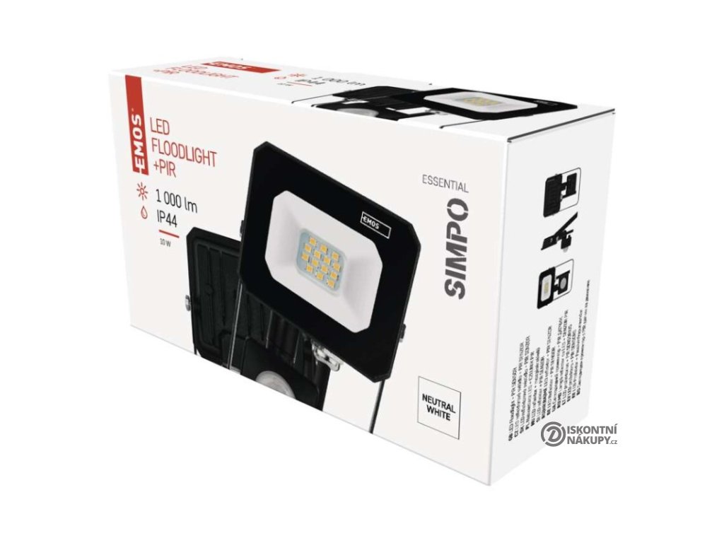 akumulátor: ne|barva: černá|barva světla: neutrální bílá|délka přívodního kabelu: 20 cm|doba svícení na AKU: neuvádí se|dosah PIR senzoru: 8 m|energetická třída použitého světelného zdroje: F|flicker-free: ano|frekvence: 50/60 Hz|index podání barev (CRI): Ra > 80|kategorie: ESSENTIAL|krytí: IP44|materiál difuzoru: sklo|materiál přívodního kabelu: guma|materiál těla: hliník|napájení: ze sítě|napětí: 220–240 V~|PIR senzor: ano|počet průchozích zásuvek: neuvádí se|použití: závěsná montáž|příkon: 10 W|prodejní obal: 1 ks, krabice|proud: 45 mA|řada: SIMPO|rozměr: 85 × 141 × 52 mm|rozsah pracovní teploty: -20 °C až +40 °C|stmívání: ne|stupeň ochrany proti mechanickým nárazům: neuvádí se|světelná účinnost: 100 lm/W|světelný tok: 1 000 lm|teplota chromatičnosti: 4 000 K|typ přívodního kabelu: H05RN-F|typ průchozích zásuvek: neuvádí se|účiník: > 0,5|úhel vyzařování: 120°|záruční doba: 2 roky|zdroj světla: LED|životnost: 25 000 hodin|zkušební žárovka součástí balení: neDoplňkové parametry
