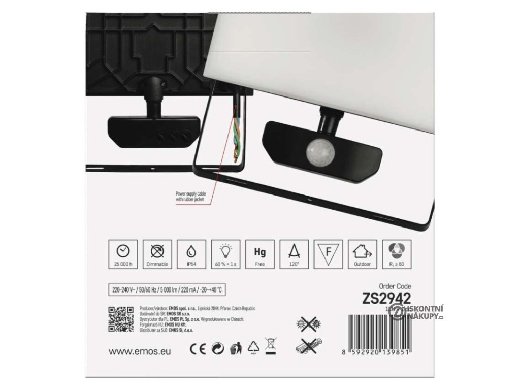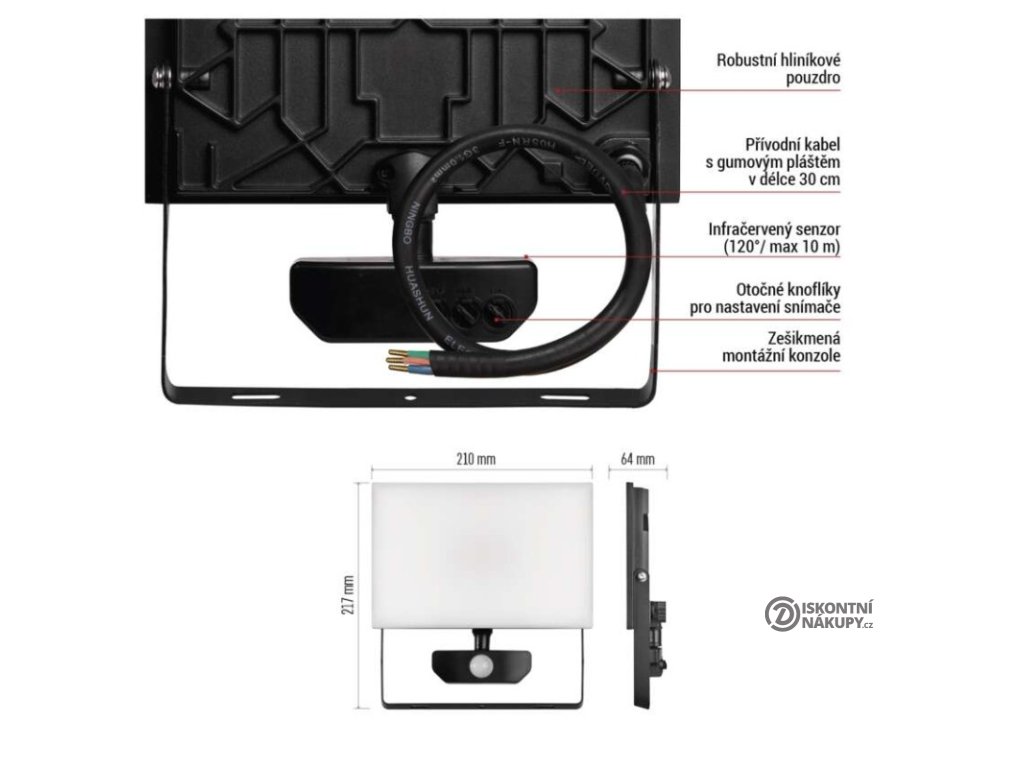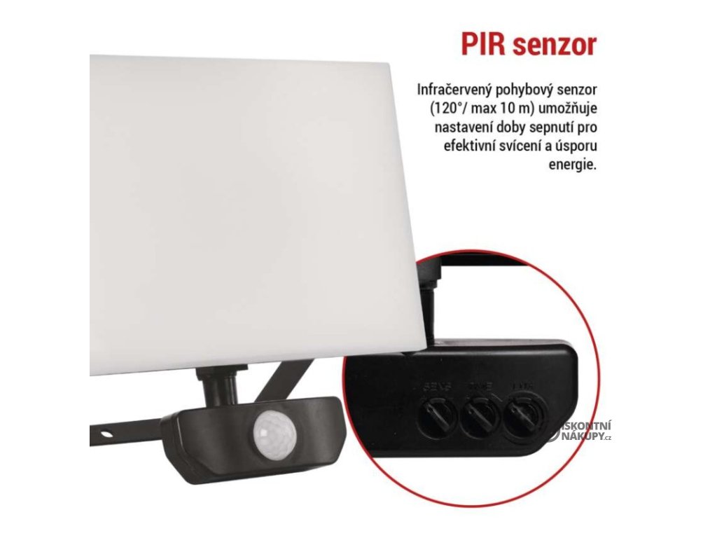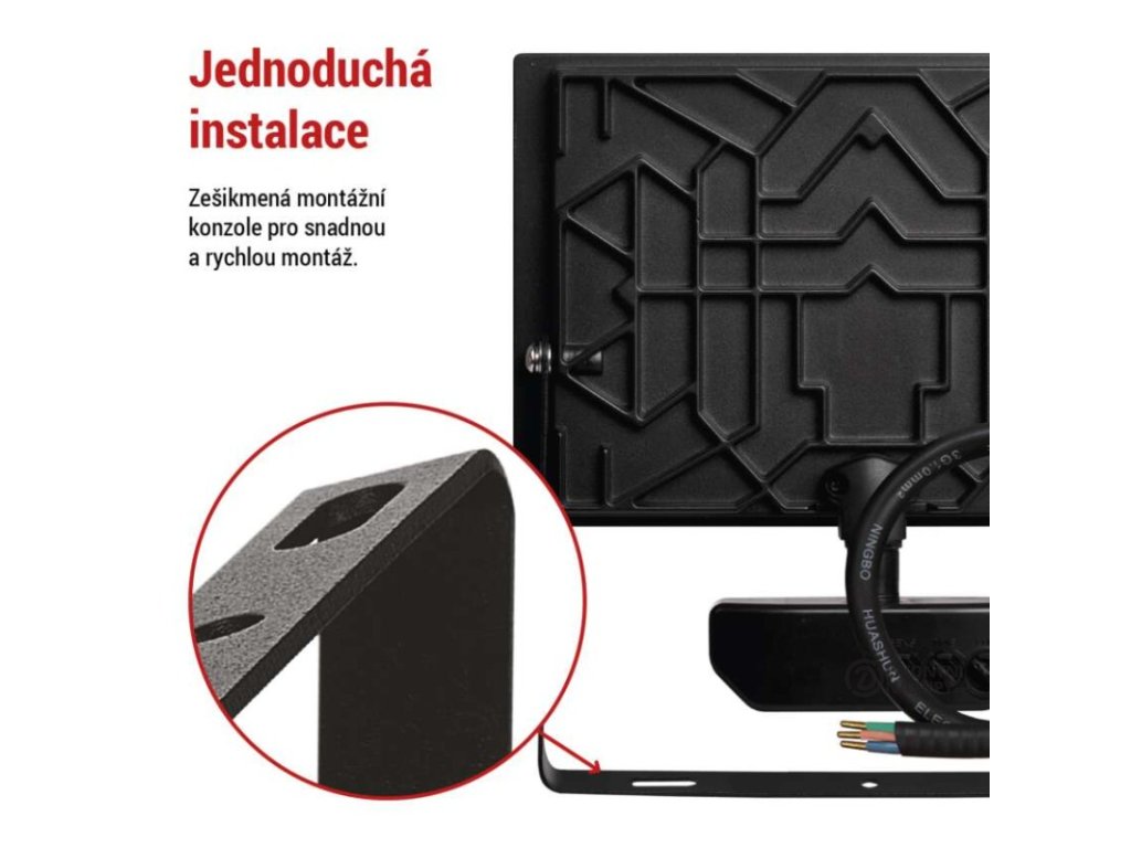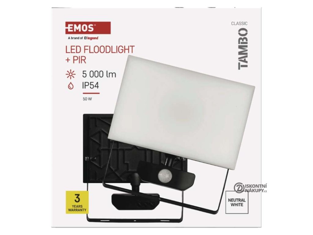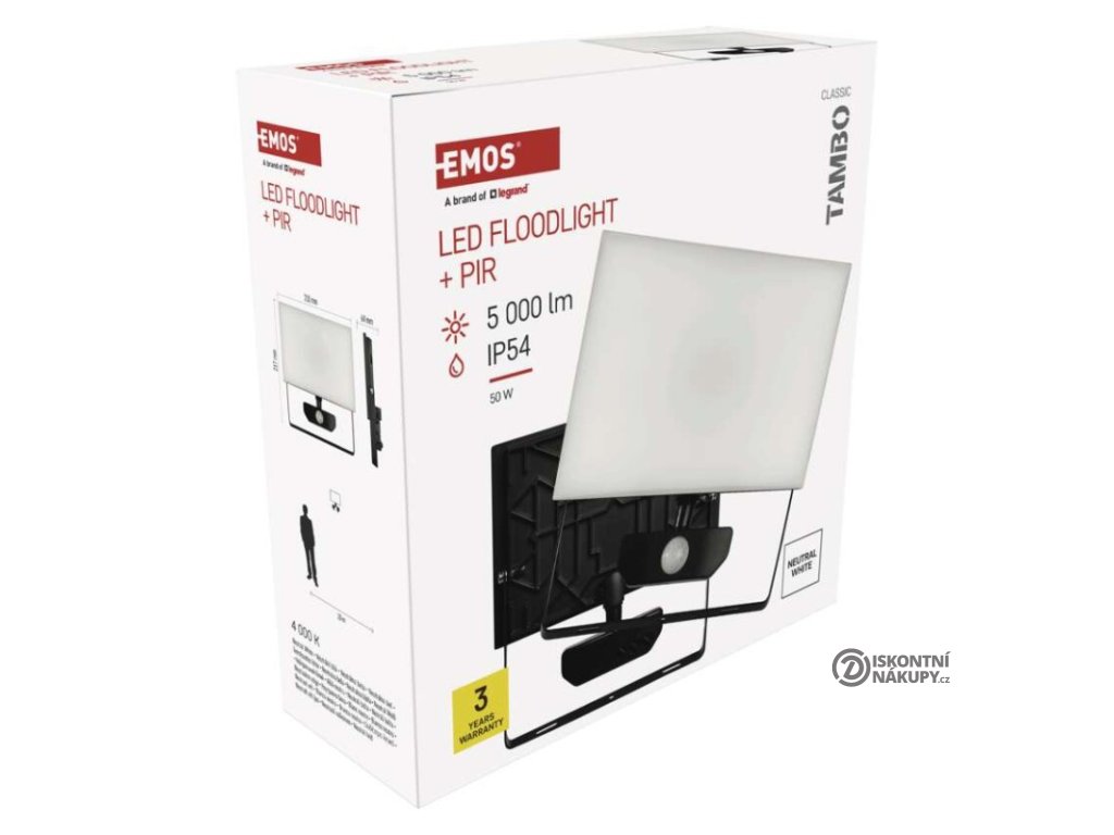 akumulátor: neuvádí se|barva: černá|barva světla: neutrální bílá|délka přívodního kabelu: 30 cm|doba svícení na AKU: neuvádí se|dosah PIR senzoru: 10 m|energetická třída použitého světelného zdroje: neuvádí se|flicker-free: ano|frekvence: 50/60 Hz|index podání barev (CRI): Ra > 80|kategorie: CLASSIC|krytí: IP54|materiál difuzoru: plast (PC)|materiál přívodního kabelu: guma|materiál těla: hliník|napájení: ze sítě|napětí: 220–240 V~|PIR senzor: ano|počet průchozích zásuvek: 0|použití: povrchová montáž|příkon: 50 W|prodejní obal: 1 ks, krabice|proud: 220 mA|řada: TAMBO|rozměr: 210 × 217 × 64 mm|rozsah pracovní teploty: -20 °C až +40 °C|stmívání: ne|stupeň ochrany proti mechanickým nárazům: IK06|světelná účinnost: 100 lm/W|světelný tok: 5 000 lm|teplota chromatičnosti: 4 000 K|typ přívodního kabelu: neuvádí se|typ průchozích zásuvek: neuvádí se|typ stmívání: –|účiník: > 0,9|úhel vyzařování: 120°|záruční doba: 3 roky|zdroj světla: LED|životnost: 25 000 hodin|zkušební žárovka součástí balení: neDoplňkové parametry