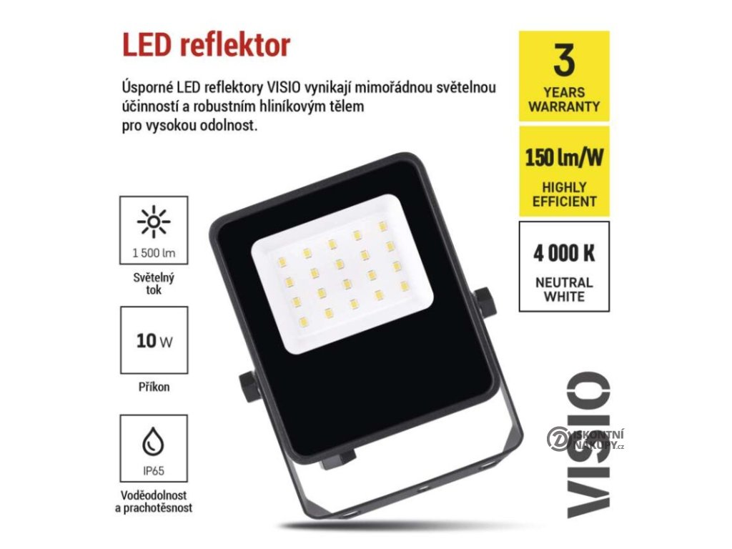 LED reflektor VISIO, 10 W, černý, neutrální bílá