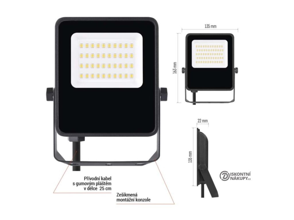 LED reflektor VISIO, 20 W, černý, neutrální bílá