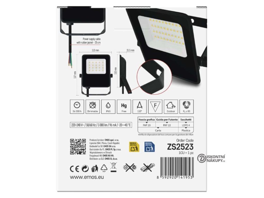 akumulátor: ne|barva: černá|barva světla: neutrální bílá|délka přívodního kabelu: 25 cm|doba svícení na AKU: –|dosah PIR senzoru: nemá PIR|energetická třída použitého světelného zdroje: D|flicker-free: ano|frekvence: 50/60 Hz|index podání barev (CRI): Ra > 80|kategorie: CLASSIC|krytí: IP65|materiál difuzoru: sklo|materiál přívodního kabelu: guma|materiál těla: hliník|napájení: ze sítě|napětí: 220–240 V~|PIR senzor: ne|počet průchozích zásuvek: –|použití: povrchová montáž|příkon: 20 W|prodejní obal: 1 ks, krabice|proud: 96 mA|řada: VISIO|rozměr: 137 × 113 × 22 mm|rozsah pracovní teploty: -20 °C až +40 °C|stmívání: ne|stupeň ochrany proti mechanickým nárazům: IK06|světelná účinnost: 150 lm/W|světelný tok: 3 000 lm|teplota chromatičnosti: 4 000 K|typ přívodního kabelu: H05RN-F|typ průchozích zásuvek: –|typ stmívání: –|účiník: > 0,9|úhel vyzařování: 110°|záruční doba: 3 roky|zdroj světla: LED|životnost: 36 000 hodin|zkušební žárovka součástí balení: neDoplňkové parametry
