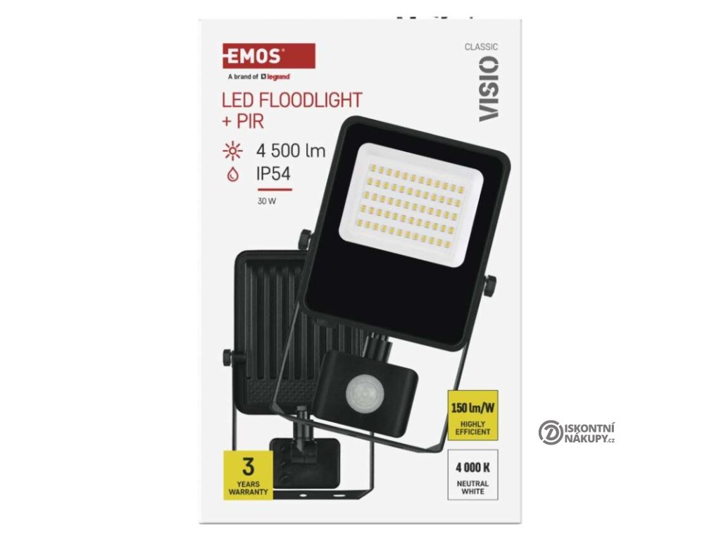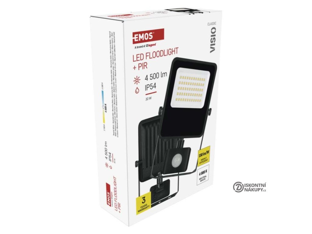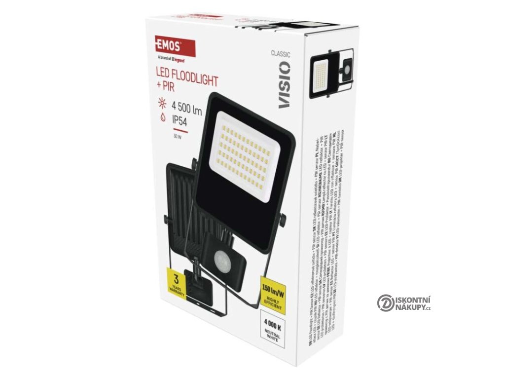 akumulátor: ne|barva: černá|barva světla: neutrální bílá|délka přívodního kabelu: 25 cm|doba svícení na AKU: –|dosah PIR senzoru: 10 m|energetická třída použitého světelného zdroje: D|flicker-free: ano|frekvence: 50/60 Hz|index podání barev (CRI): Ra > 80|kategorie: CLASSIC|krytí: IP54|materiál difuzoru: sklo|materiál přívodního kabelu: guma|materiál těla: hliník|napájení: ze sítě|napětí: 220–240 V~|PIR senzor: ano|počet průchozích zásuvek: –|použití: povrchová montáž|příkon: 30 W|prodejní obal: 1 ks, krabice|proud: 135 mA|řada: VISIO|rozměr: 215 × 135 × 50 mm|rozsah pracovní teploty: -20 °C až +40 °C|stmívání: ne|stupeň ochrany proti mechanickým nárazům: IK06|světelná účinnost: 150 lm/W|světelný tok: 4 500 lm|teplota chromatičnosti: 4 000 K|typ přívodního kabelu: H05RN-F|typ průchozích zásuvek: –|typ stmívání: –|účiník: > 0,9|úhel vyzařování: 110°|záruční doba: 3 roky|zdroj světla: LED|životnost: 36 000 hodin|zkušební žárovka součástí balení: neDoplňkové parametry
