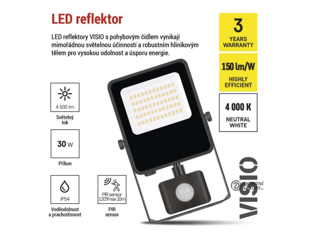LED reflektor VISIO s pohybovým čidlem, 30 W, černý, neutrální bílá