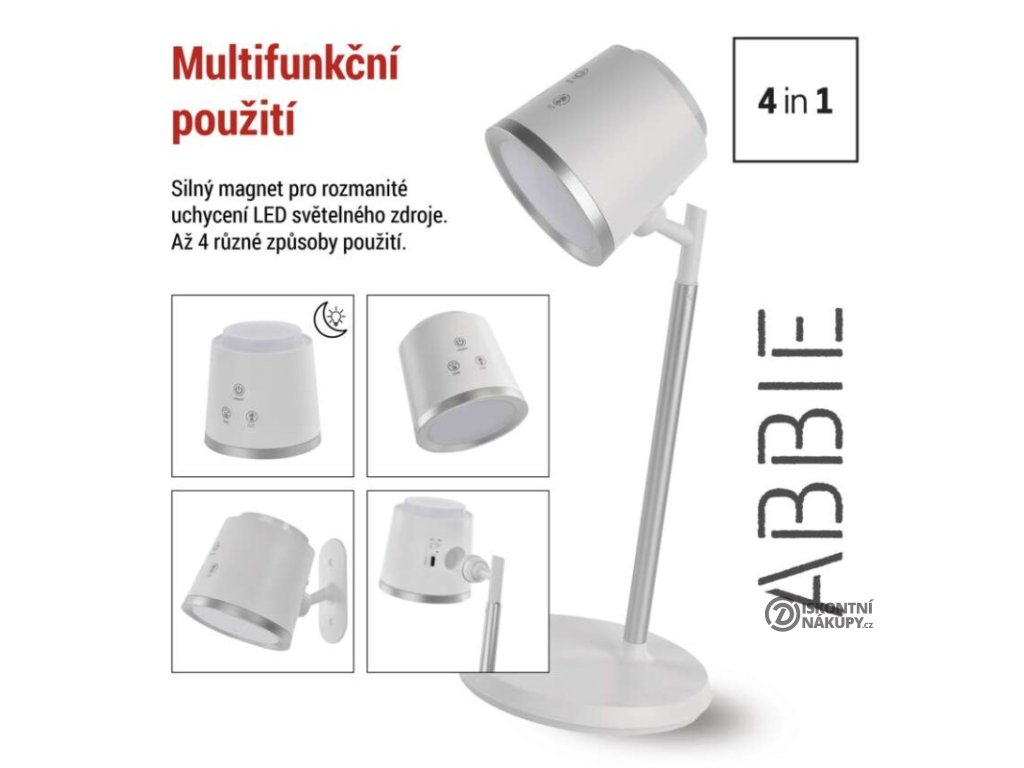 LED stolní lampa ABBIE, nabíjecí, bílá