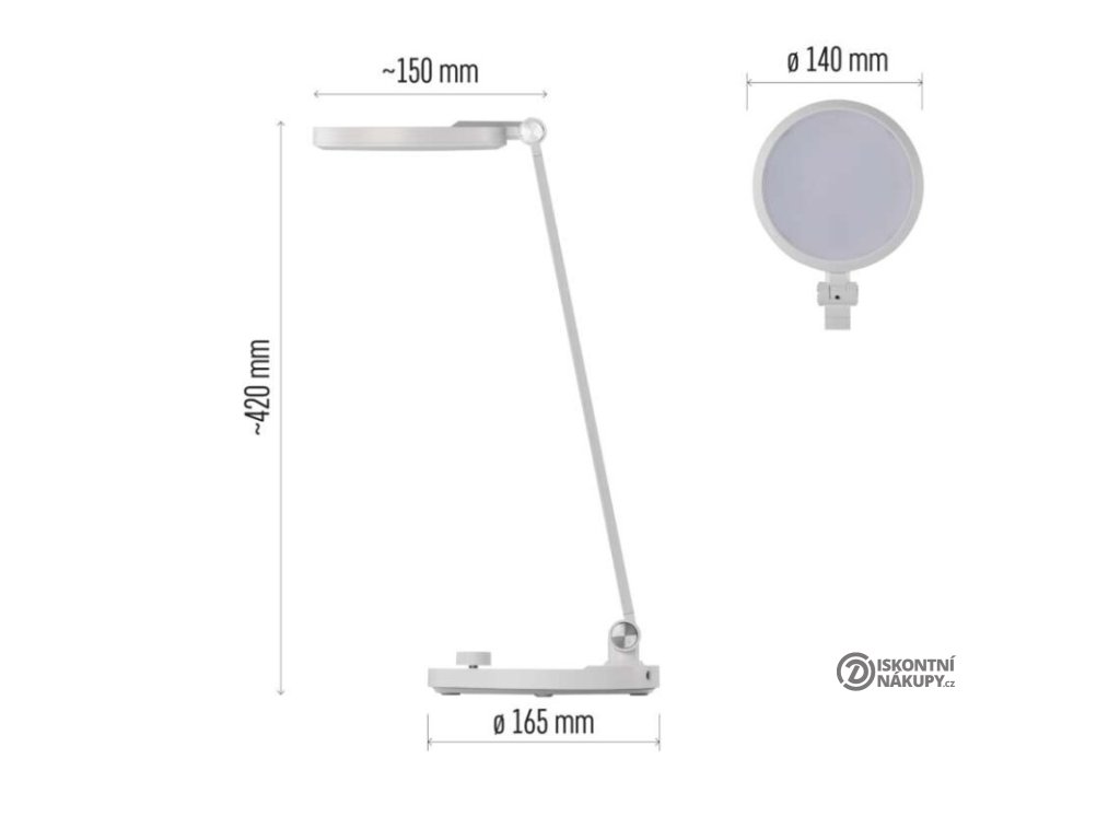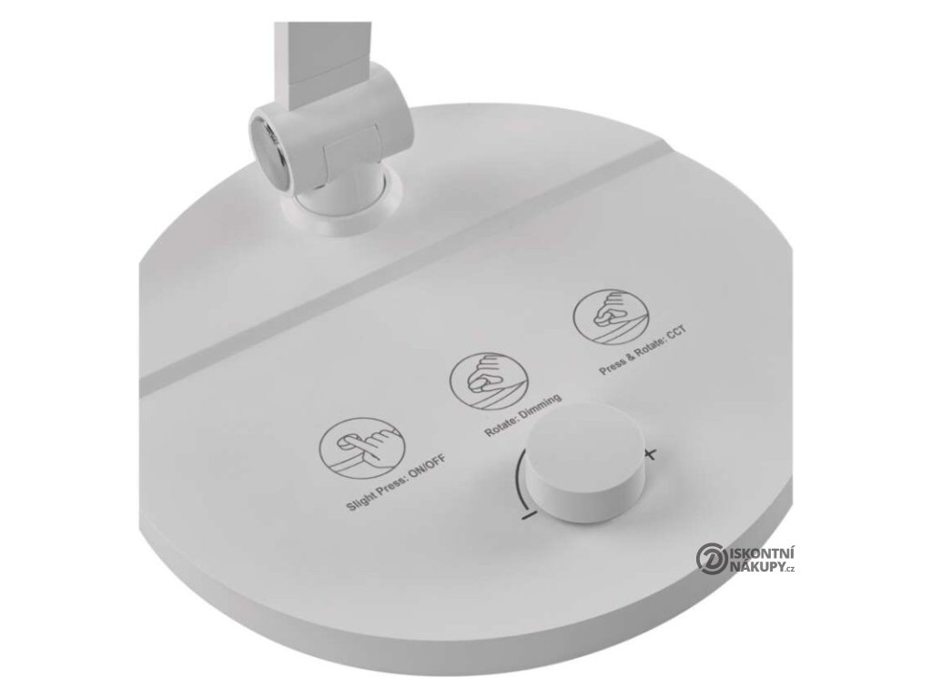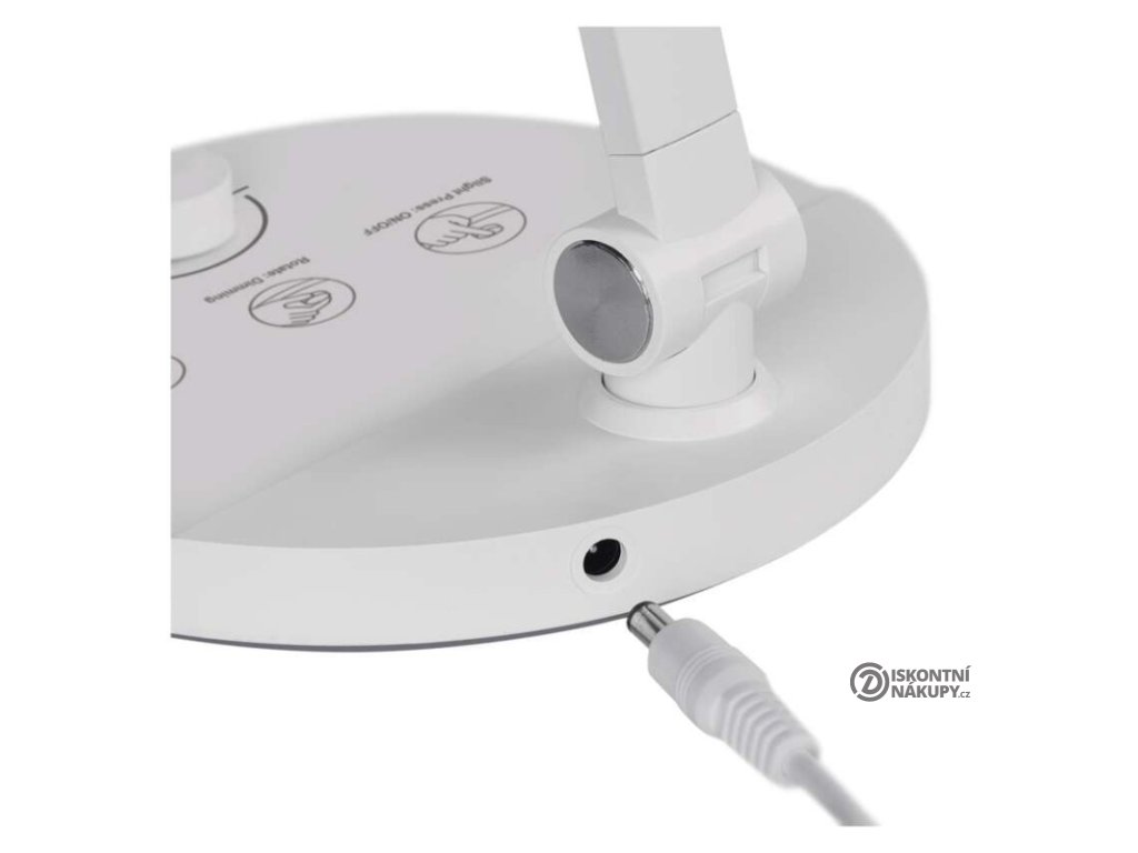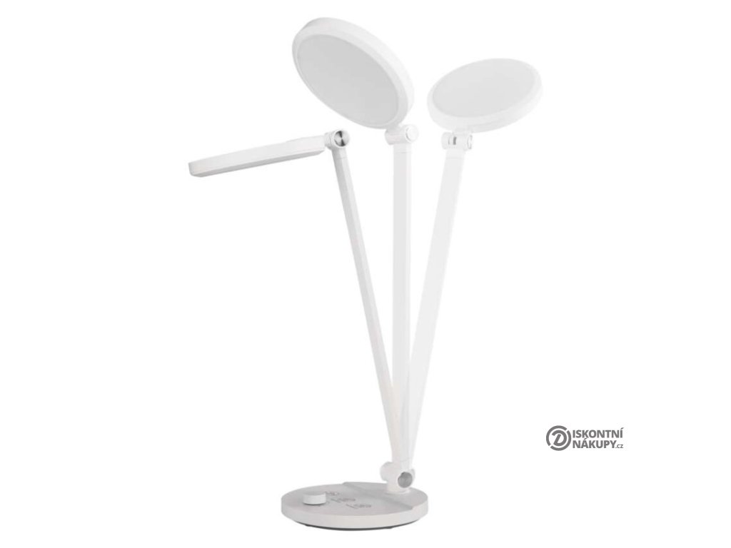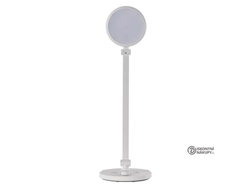 Díky dvěma otočným kloubům lze lampičku nastavit přesně dle preferencí. Jednoduché ovládání otočným tlačítkem. Napájení přes adaptér, který je součástí balení. Elegantní černé/bílé provedení je vhodné do všech typů interiérů. Konstrukce je pevná a stabilní. Při namíření reflektoru proti sobě lze využít i jako soft box – čelní světlo pro videohovory či přídavné světlo při fotografování „selfies".
