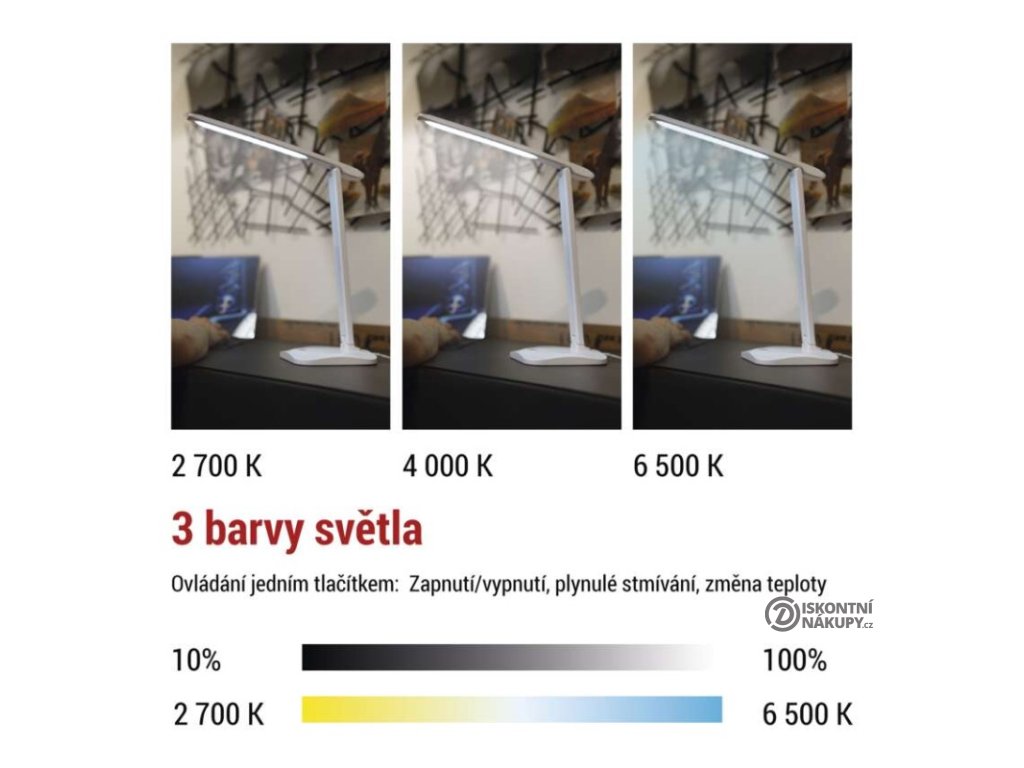 Na ovládacím panelu si můžete zvolit intenzitu a odstín svícení.Na výběr je z více barev.