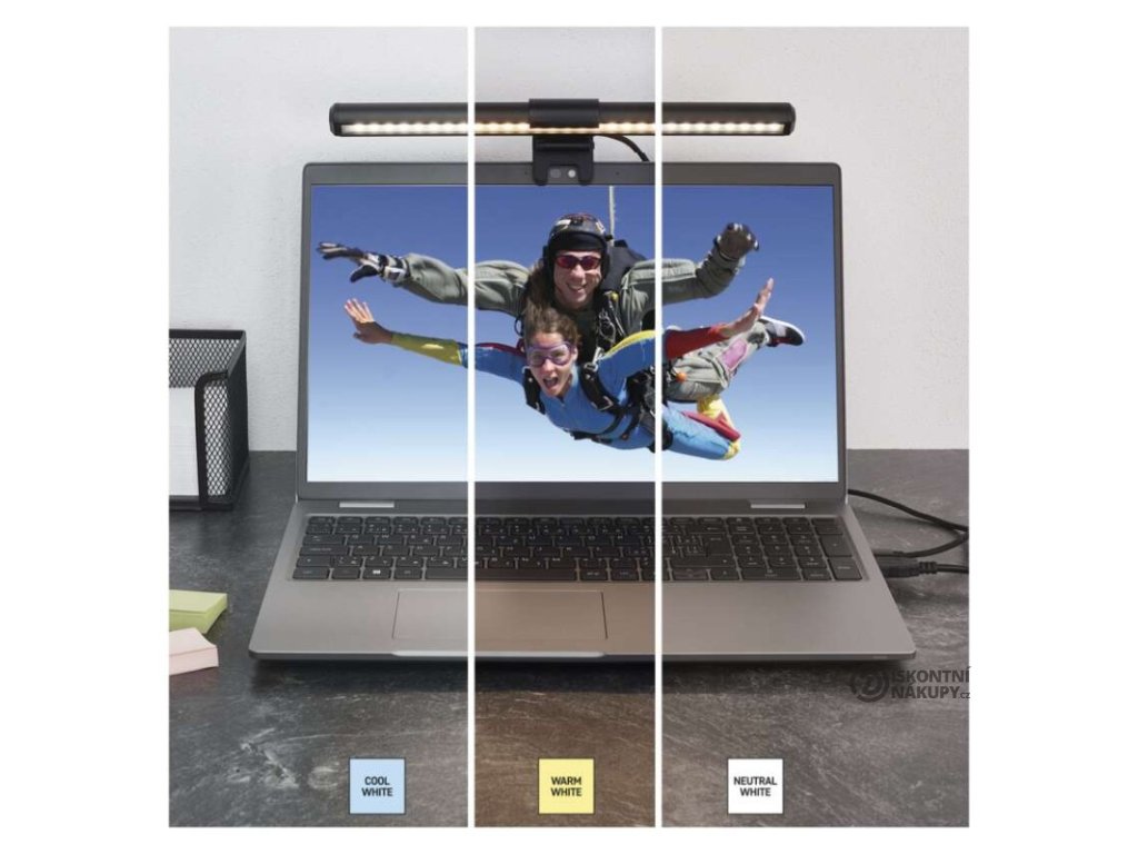 šetří místo na pracovním stole- Speciální NO GLARE technologie, která osvítí pouze klávesnici a stůl (nesvítí na obrazovku a tím zbytečně nezatěžuje oči)- Napájení přímo z PC přes USB kabel (2 v 1 – USB A, USB C), který je chráněn textilním opletením (součástí balení)- Jednoduchá a rychlá instalace- Elegantní černé provedení- Součástí balení příslušenství k upevnění a také praktický pytlík na cesty- Vhodné na monitory s tloušťkou 1–15 mm- Praktický výřez na web kameru- Komfort při práci i mimo domov