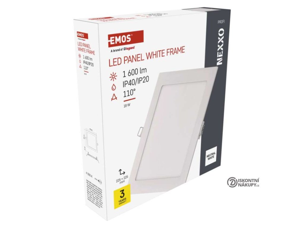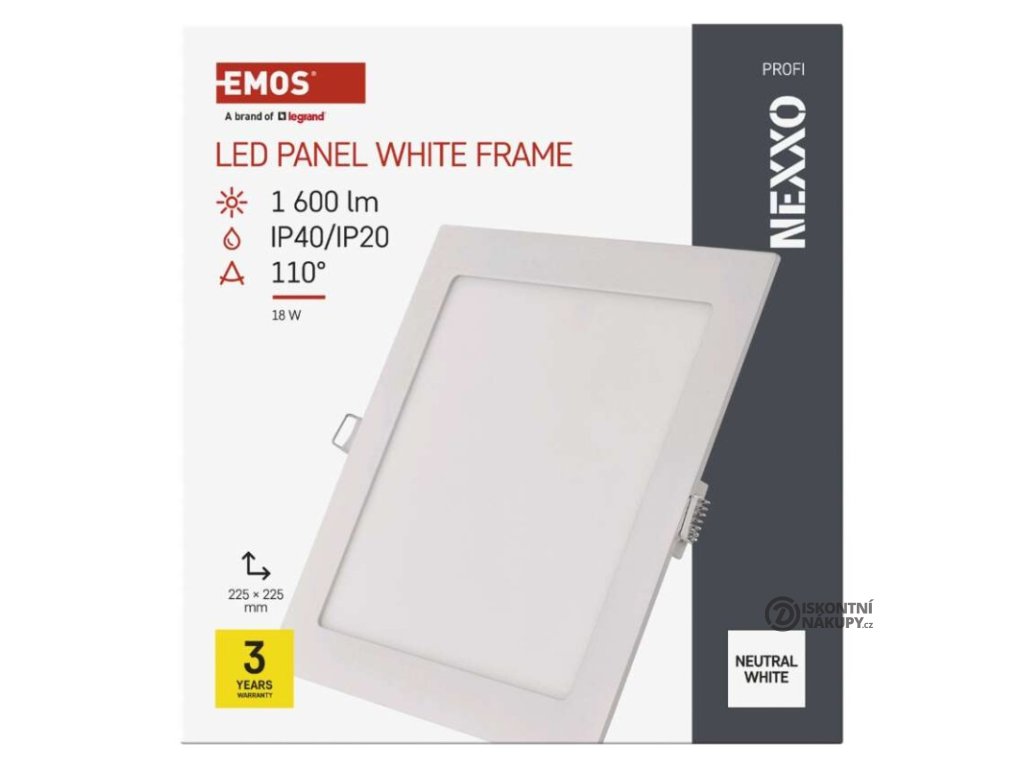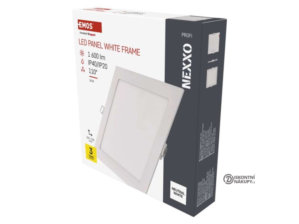 barva světla: neutrální bílá|barva těla: bílá|dálkový ovladač: ne|do chodby a na schodiště: ano|do dílny a garáže: ne|do kanceláře: ano|do koupelny: ne|do kuchyně: ano|do obýváku, ložnice a dětského pokoje: ano|dosah senzoru: nemá senzor|flicker-free: ano|frekvence: 50/60 Hz|index podání barev (CRI): Ra > 82|kategorie: PROFI|krytí: IP40/IP20|materiál difuzoru: plast (PS)|materiál LGP: PMMA|materiál těla: hliník|montážní otvor: 205 × 205 mm|možnost stmívání: ne|náhrada za žárovku: 100 W|napětí: 220–240 V|na zahradu a balkon: ne|pohybový senzor: ne|příkon: 18 W|prodejní obal: 1 ks, krabice|proud: 84 mA|řada: NEXXO|rozměr: 225 × 225 × 21 mm|světelná účinnost: 83 lm/W|světelný tok: 1 600 lm|teplota chromatičnosti: 4 000 K|tvar: čtverec|typ difuzoru: mléčný|typ svítidla: klasické svítidlo|účiník: > 0,9|UGR<: neuvádí se|úhel vyzařování: 110°|umístění: stropní|výstupní proud ze zdroje: 300 mA|záruční doba: 3 roky|zdroj světla: LED|životnost: 30 000 hodin|způsob montáže: vestavnéVýhody produktu
