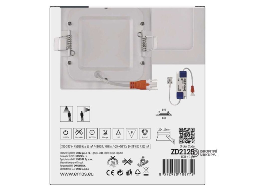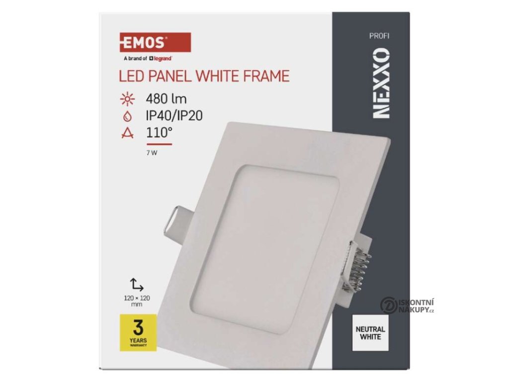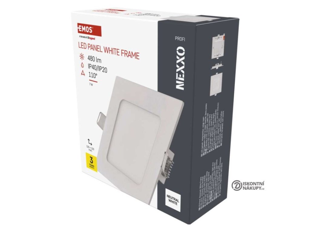 barva světla: neutrální bílá|barva těla: bílá|dálkový ovladač: ne|do chodby a na schodiště: ano|do dílny a garáže: ne|do kanceláře: ano|do koupelny: ne|do kuchyně: ano|do obýváku, ložnice a dětského pokoje: ano|dosah senzoru: nemá senzor|flicker-free: ano|frekvence: 50/60 Hz|index podání barev (CRI): Ra > 82|kategorie: PROFI|krytí: IP40/IP20|materiál difuzoru: plast (PS)|materiál LGP: PMMA|materiál těla: hliník|montážní otvor: 105 × 105 mm|možnost stmívání: ne|náhrada za žárovku: 40 W|napětí: 220–240 V|na zahradu a balkon: ne|pohybový senzor: ne|příkon: 7 W|prodejní obal: 1 ks, krabice|proud: 63 mA|řada: NEXXO|rozměr: 120 × 120 × 21 mm|světelná účinnost: 75 lm/W|světelný tok: 480 lm|teplota chromatičnosti: 4 000 K|tvar: čtverec|typ difuzoru: mléčný|typ svítidla: klasické svítidlo|účiník: > 0,5|UGR<: neuvádí se|úhel vyzařování: 110°|umístění: stropní|výstupní proud ze zdroje: 300 mA|záruční doba: 3 roky|zdroj světla: LED|životnost: 30 000 hodin|způsob montáže: vestavnéVýhody produktu