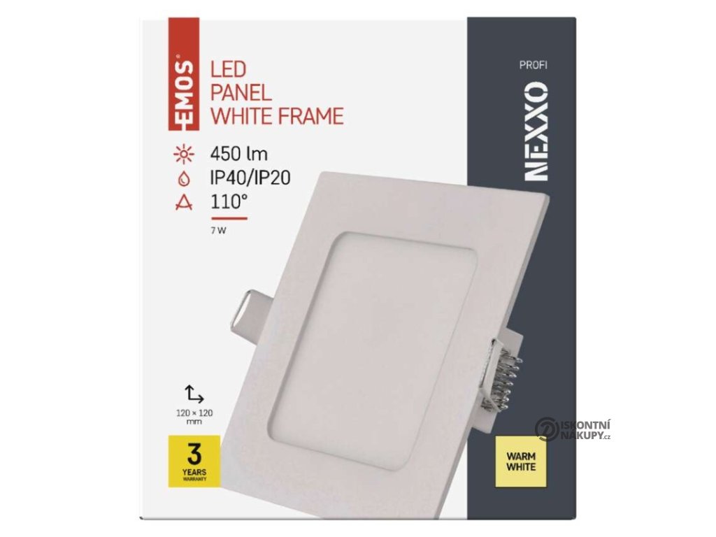 barva světla: teplá bílá|barva těla: bílá|dálkový ovladač: ne|do chodby a na schodiště: ano|do dílny a garáže: ne|do kanceláře: ano|do koupelny: ne|do kuchyně: ano|do obýváku, ložnice a dětského pokoje: ano|dosah senzoru: nemá senzor|flicker-free: ano|frekvence: 50/60 Hz|index podání barev (CRI): Ra > 82|kategorie: PROFI|krytí: IP40/IP20|materiál difuzoru: plast (PS)|materiál LGP: PMMA|materiál těla: hliník|montážní otvor: 105 × 105 mm|možnost stmívání: ne|náhrada za žárovku: 40 W|napětí: 220–240 V|na zahradu a balkon: ne|pohybový senzor: ne|příkon: 7 W|prodejní obal: 1 ks, krabice|proud: 63 mA|řada: NEXXO|rozměr: 120 × 120 × 21 mm|světelná účinnost: 75 lm/W|světelný tok: 450 lm|teplota chromatičnosti: 3 000 K|tvar: čtverec|typ difuzoru: mléčný|typ svítidla: klasické svítidlo|účiník: > 0,5|UGR<: neuvádí se|úhel vyzařování: 110°|umístění: stropní|výstupní proud ze zdroje: 300 mA|záruční doba: 3 roky|zdroj světla: LED|životnost: 30 000 hodin|způsob montáže: vestavnéVýhody produktu