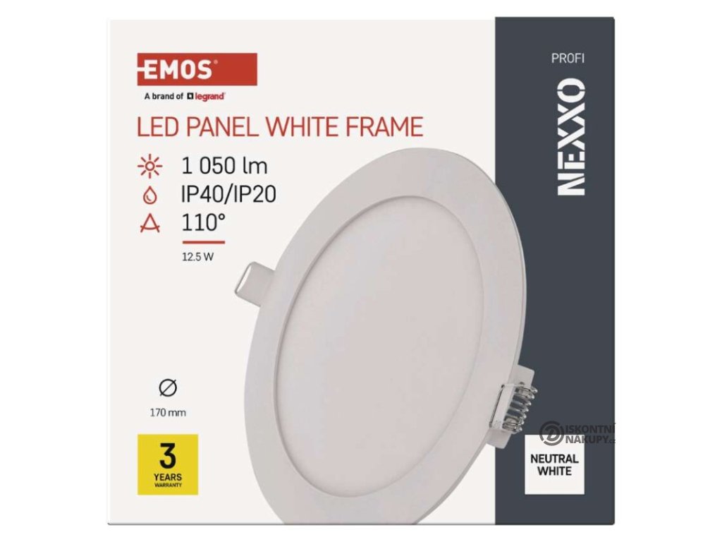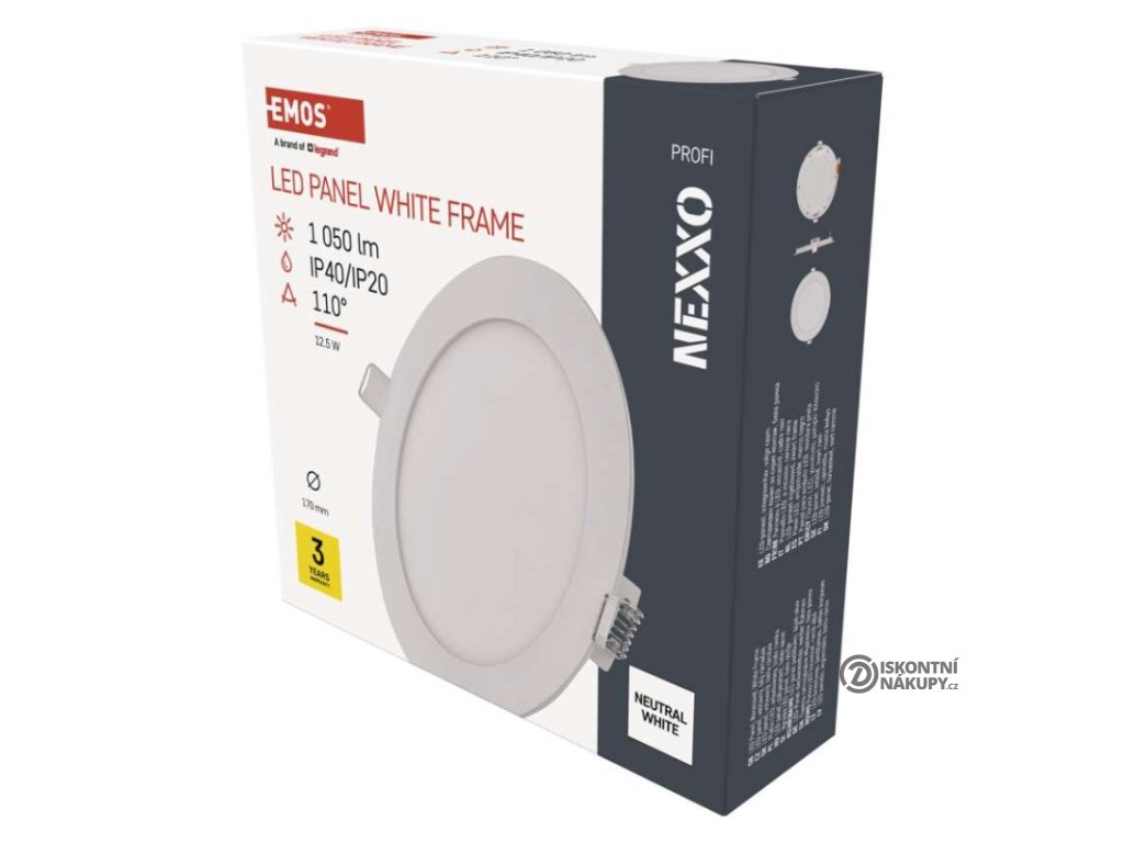 barva světla: neutrální bílá|barva těla: bílá|dálkový ovladač: ne|do chodby a na schodiště: ano|do dílny a garáže: ne|do kanceláře: ano|do koupelny: ne|do kuchyně: ano|do obýváku, ložnice a dětského pokoje: ano|dosah senzoru: nemá senzor|flicker-free: ano|frekvence: 50/60 Hz|index podání barev (CRI): Ra > 82|kategorie: PROFI|krytí: IP40/IP20|materiál difuzoru: plast (PS)|materiál LGP: PMMA|materiál těla: hliník|montážní otvor: 155 mm|možnost stmívání: ne|náhrada za žárovku: 70 W|napětí: 220–240 V|na zahradu a balkon: ne|pohybový senzor: ne|příkon: 12,5 W|prodejní obal: 1 ks, papírová krabička|proud: 109 mA|řada: NEXXO|rozměr: průměr 170 × 21 mm|světelná účinnost: 83 lm/W|světelný tok: 1 050 lm|teplota chromatičnosti: 4 000 K|tvar: kruh|typ difuzoru: mléčný|typ svítidla: klasické svítidlo|účiník: > 0,5|UGR<: neuvádí se|úhel vyzařování: 110°|umístění: stropní|výstupní proud ze zdroje: 300 mA|záruční doba: 3 roky|zdroj světla: LED|životnost: 30 000 hodin|způsob montáže: vestavnéVýhody produktu