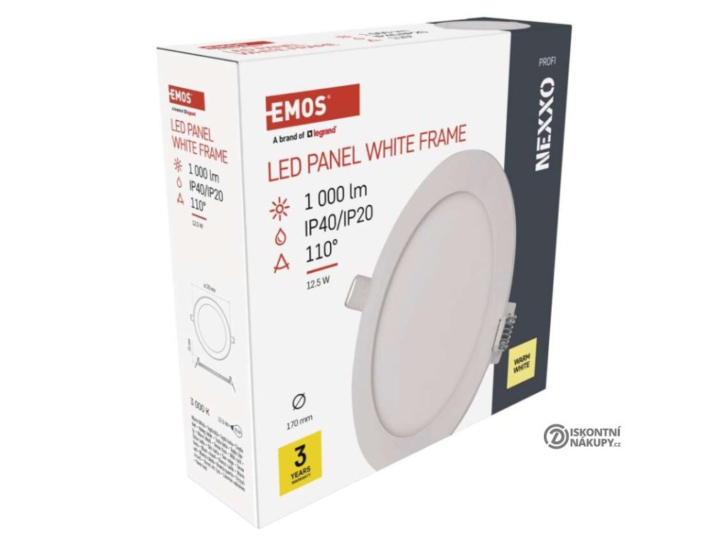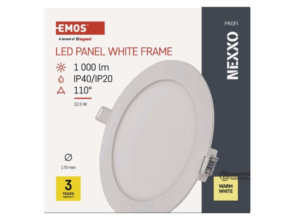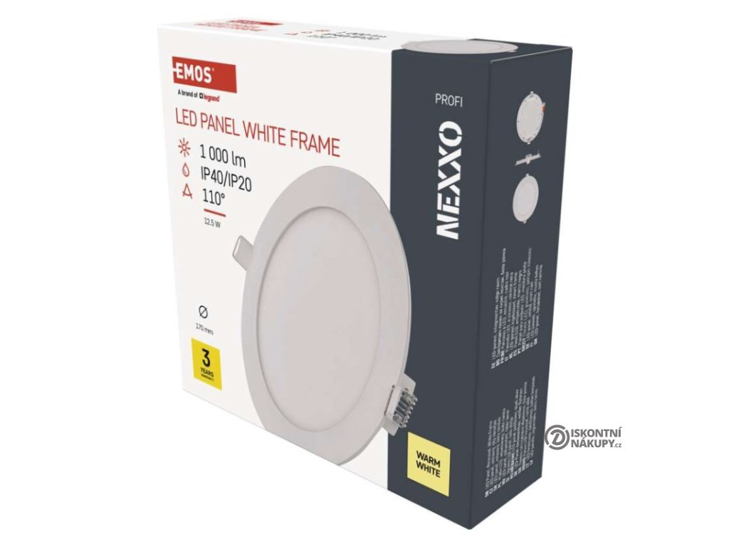 barva světla: teplá bílá|barva těla: bílá|dálkový ovladač: ne|do chodby a na schodiště: ano|do dílny a garáže: ne|do kanceláře: ano|do koupelny: ne|do kuchyně: ano|do obýváku, ložnice a dětského pokoje: ano|dosah senzoru: nemá senzor|flicker-free: ano|frekvence: 50/60 Hz|index podání barev (CRI): Ra > 82|kategorie: PROFI|krytí: IP40/IP20|materiál difuzoru: plast (PS)|materiál LGP: PMMA|materiál těla: hliník|montážní otvor: 155 mm|možnost stmívání: ne|náhrada za žárovku: 70 W|napětí: 220–240 V|na zahradu a balkon: ne|pohybový senzor: ne|příkon: 12,5 W|prodejní obal: 1 ks, krabice|proud: 109 mA|řada: NEXXO|rozměr: průměr 170 × 21 mm|světelná účinnost: 83 lm/W|světelný tok: 1 000 lm|teplota chromatičnosti: 3 000 K|tvar: kruh|typ difuzoru: mléčný|typ svítidla: klasické svítidlo|účiník: > 0,5|UGR<: neuvádí se|úhel vyzařování: 110°|umístění: stropní|výstupní proud ze zdroje: 300 mA|záruční doba: 3 roky|zdroj světla: LED|životnost: 30 000 hodin|způsob montáže: vestavnéVýhody produktu