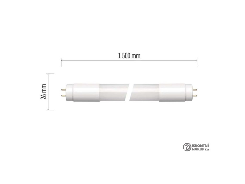 barva světla: neutrální bílá|energetická třída: F|index podání barev (CRI): 80|kompatibilita: –|náhrada za žárovku: neuvádí se|napětí: 230 V~/50 Hz|notifikace do mobilní aplikace: –|ovládání hlasovými asistenty: –|patice (uchycení žárovky): G13|počet čipů: 120|počet spínacích cyklů: 20 000|podporované OS: –|přenosová frekvence: –|příkon: 24,3 W|prodejní obal: 25 ks, krabička|protokol: –|řada: BASIC|rozměr: 1 500 × 26 × 26 mm|stmívatelná: ne|světelná účinnost: 103 lm/W|světelný tok: 2 500 lm|technologie: LED|teplota chromatičnosti: 4 000 K|tvar: T8|typ čipů: SMD|účiník: 0,5|úhel vyzařování: 260°|záruční doba: 2 roky|životnost: 20 000 hodinVýhody produktu