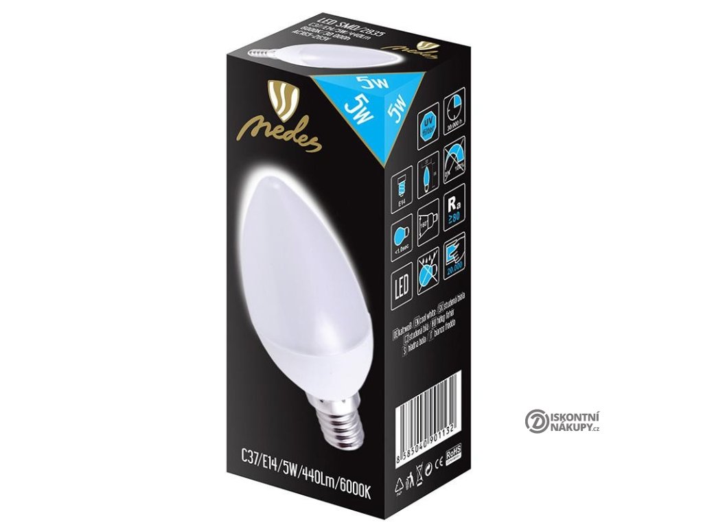LED žárovka 5W-C37/E14/SMD/6000K - ZLS702