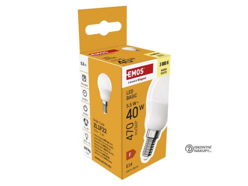 barva světla: teplá bílá|energetická třída: F|index podání barev (CRI): 80|kompatibilita: –|náhrada za žárovku: 40 W|napětí: 230 V~/50 Hz|notifikace do mobilní aplikace: ne|ovládání hlasovými asistenty: ne|patice (uchycení žárovky): E14|počet čipů: neuvádí se|počet spínacích cyklů: 20 000|podporované OS: –|přenosová frekvence: –|příkon: 5,5 W|prodejní obal: 1 ks, krabička|protokol: –|řada: BASIC|rozměr: 45 × 45 × 82 (max.) mm|stmívatelná: ne|světelná účinnost: 85 lm/W|světelný tok: 470 lm|technologie: LED|teplota chromatičnosti: 3 000 K|tvar: Mini Globe|typ čipů: SMD|účiník: 0,50|úhel vyzařování: 180°|záruční doba: 2 roky|životnost: 20 000 hodinDoplňkové parametry