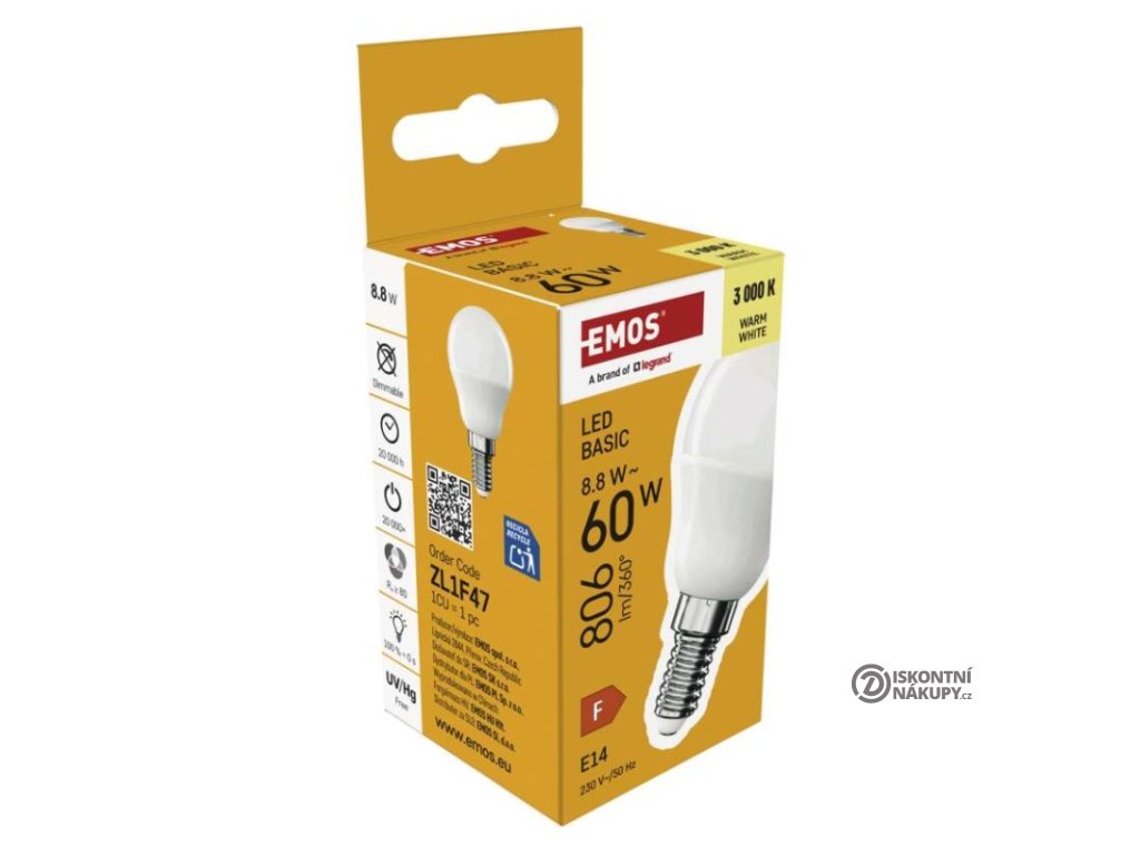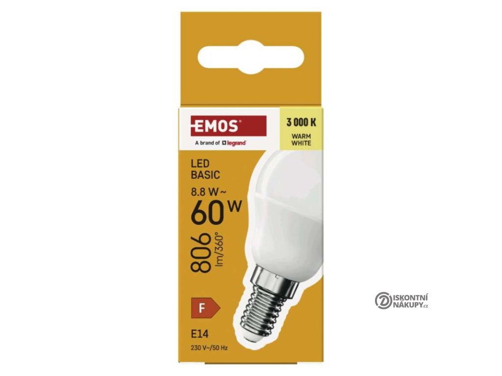 barva světla: teplá bílá|energetická třída: F|index podání barev (CRI): 80|kompatibilita: –|náhrada za žárovku: 60 W|napětí: 230 V~/50 Hz|notifikace do mobilní aplikace: ne|ovládání hlasovými asistenty: ne|patice (uchycení žárovky): E14|počet čipů: neuvádí se|počet spínacích cyklů: 20 000|podporované OS: –|přenosová frekvence: –|příkon: 8,8 W|prodejní obal: 1 ks, krabička|protokol: –|řada: BASIC|rozměr: 45 × 45 × 82 (max.) mm|stmívatelná: ne|světelná účinnost: 92 lm/W|světelný tok: 806 lm|technologie: LED|teplota chromatičnosti: 3 000 K|tvar: Mini Globe|typ čipů: SMD|účiník: 0,50|úhel vyzařování: 180°|záruční doba: 2 roky|životnost: 20 000 hodinDoplňkové parametry