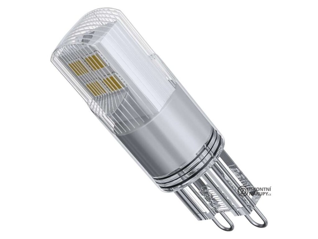 barva světla: teplá bílá|energetická třída: E|index podání barev (CRI): 80|kompatibilita: –|náhrada za žárovku: 22 W|napětí: 230 V~/50 Hz|notifikace do mobilní aplikace: –|ovládání hlasovými asistenty: –|patice (uchycení žárovky): G9|počet čipů: 8|počet spínacích cyklů: 25 000|podporované OS: –|přenosová frekvence: –|příkon: 1,9 W|prodejní obal: 1 ks, krabička|protokol: –|řada: CLASSIC|rozměr: 46 × 15 × 15 mm|stmívatelná: ne|světelná účinnost: 111 lm/W|světelný tok: 210 lm|technologie: LED|teplota chromatičnosti: 3 000 K|tvar: JC|typ čipů: SMD|účiník: 0,442|úhel vyzařování: 320°|záruční doba: 3 roky|životnost: 30 000 hodinVýhody produktu
