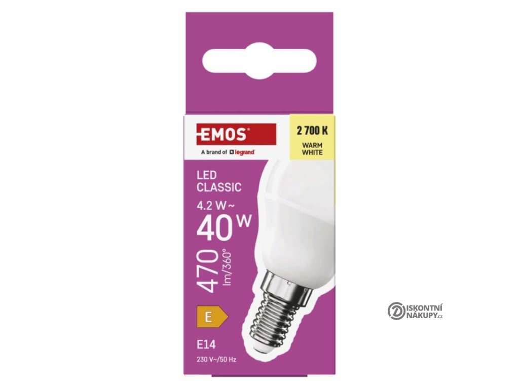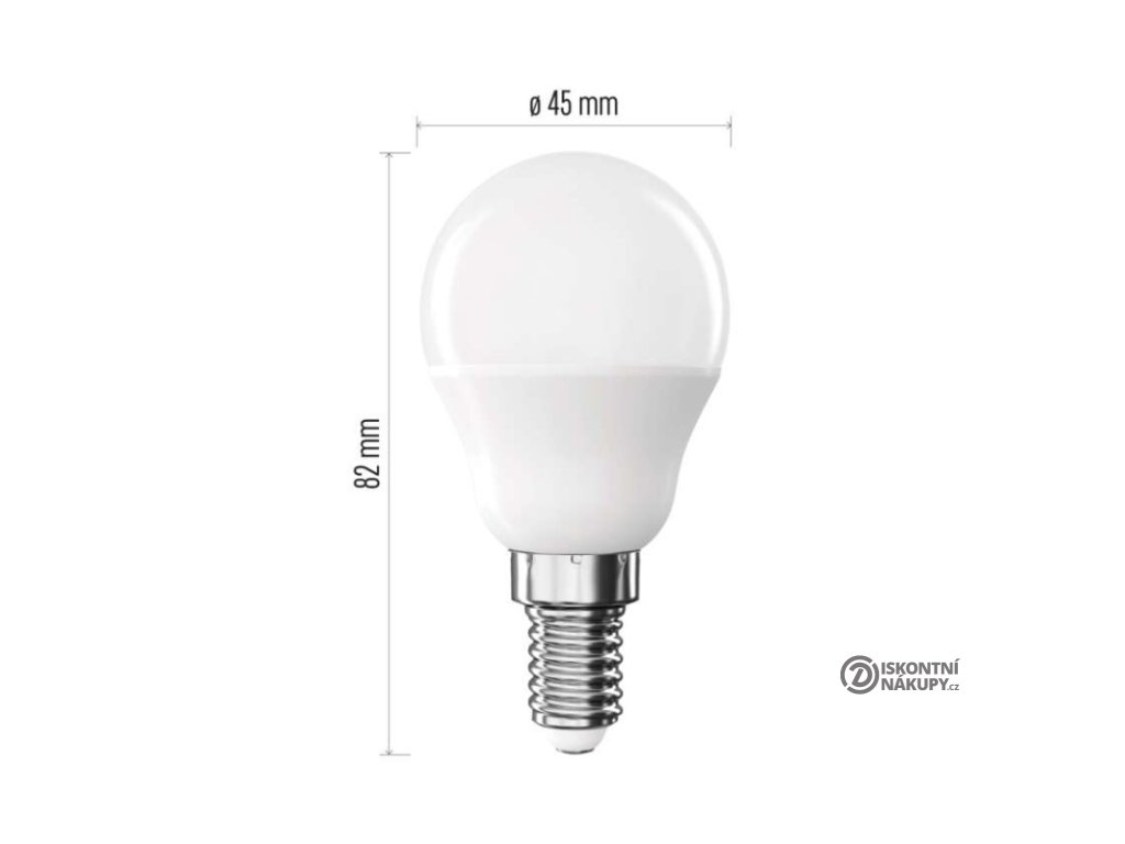 barva světla: teplá bílá|energetická třída: E|index podání barev (CRI): 80|kompatibilita: –|náhrada za žárovku: 40 W|napětí: 230 V~/50 Hz|notifikace do mobilní aplikace: ne|ovládání hlasovými asistenty: ne|patice (uchycení žárovky): E14|počet čipů: neuvádí se|počet spínacích cyklů: 30 000|podporované OS: –|přenosová frekvence: –|příkon: 4,2 W|prodejní obal: 1 ks, krabička|protokol: –|řada: CLASSIC|rozměr: 45 × 45 × 82 mm|stmívatelná: ne|světelná účinnost: 112 lm/W|světelný tok: 470 lm|technologie: LED|teplota chromatičnosti: 2 700 K|tvar: Mini Globe|typ čipů: SMD|účiník: 0,50|úhel vyzařování: 150°|záruční doba: 3 roky|životnost: 30 000 hodinDoplňkové parametry