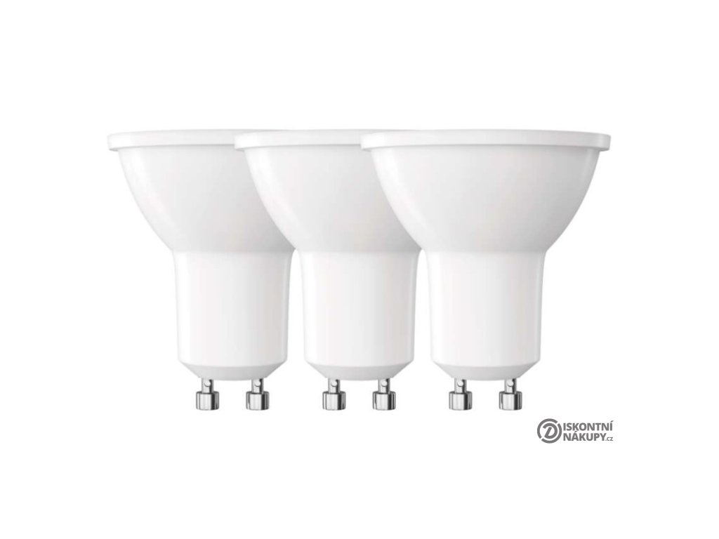 barva světla: teplá bílá|energetická třída: E|index podání barev (CRI): 80|kompatibilita: –|náhrada za žárovku: 60 W|napětí: 230 V~/50 Hz|notifikace do mobilní aplikace: ne|ovládání hlasovými asistenty: ne|patice (uchycení žárovky): GU10|počet čipů: neuvádí se|počet spínacích cyklů: 30 000|podporované OS: –|přenosová frekvence: –|příkon: 7 W|prodejní obal: 3 ks, krabička|protokol: –|řada: CLASSIC|rozměr: 50 × 50 × 58 mm|stmívatelná: ne|světelná účinnost: 115 lm/W|světelný tok: 806 lm|technologie: LED|teplota chromatičnosti: 3 000 K|tvar: MR16|typ čipů: SMD|účiník: 0,50|úhel vyzařování: 100°|záruční doba: 3 roky|životnost: 30 000 hodinDoplňkové parametry