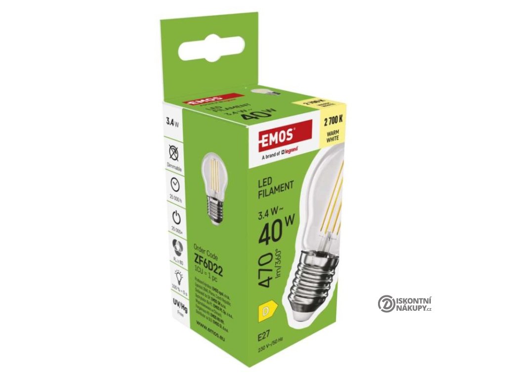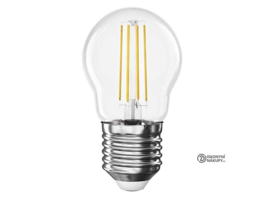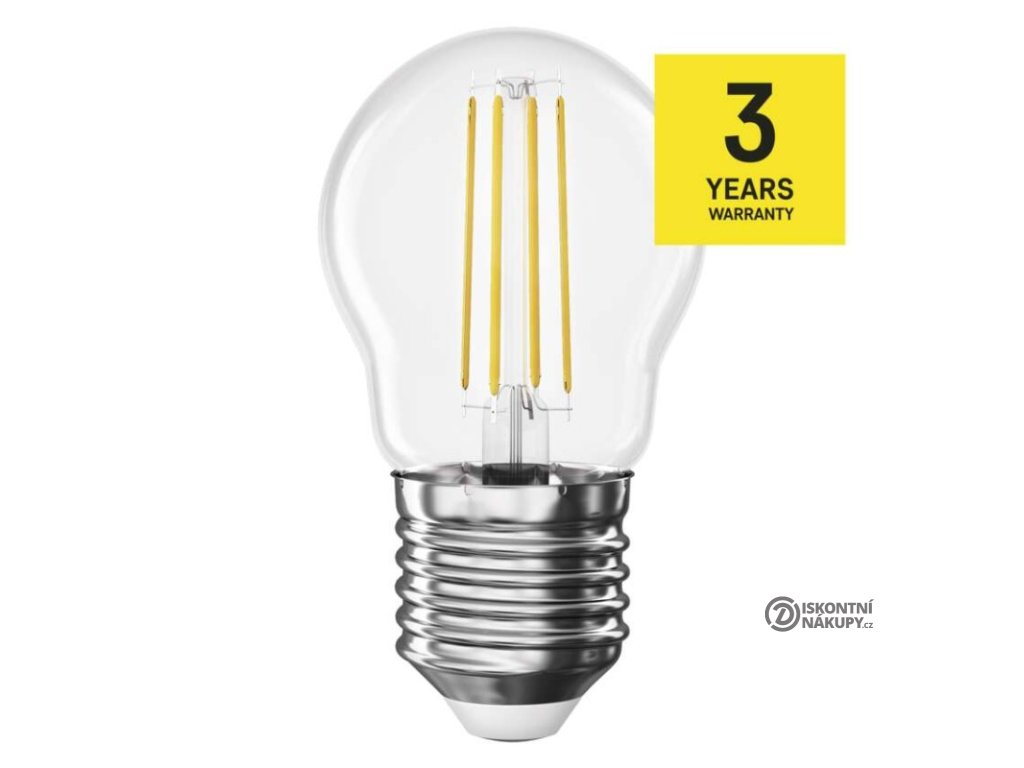 barva světla: teplá bílá|energetická třída: D|index podání barev (CRI): 80|kompatibilita: –|náhrada za žárovku: 40 W|napětí: 230 V~/50 Hz|notifikace do mobilní aplikace: ne|ovládání hlasovými asistenty: ne|patice (uchycení žárovky): E27|počet čipů: 4|počet spínacích cyklů: 25 000|podporované OS: –|přenosová frekvence: –|příkon: 3,4 W|prodejní obal: 1 ks, krabička|protokol: –|řada: FILAMENT|rozměr: 78 × 45 × 45 mm|stmívatelná: ne|světelná účinnost: 138 lm/W|světelný tok: 470 lm|technologie: LED|teplota chromatičnosti: 2 700 K|tvar: Mini Globe|typ čipů: COB|účiník: 0,50|úhel vyzařování: 360°|záruční doba: 3 roky|životnost: 25 000 hodinDoplňkové parametry