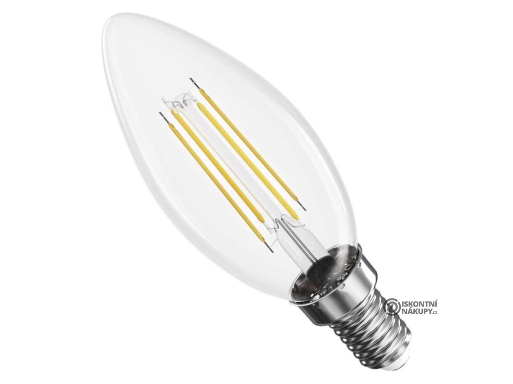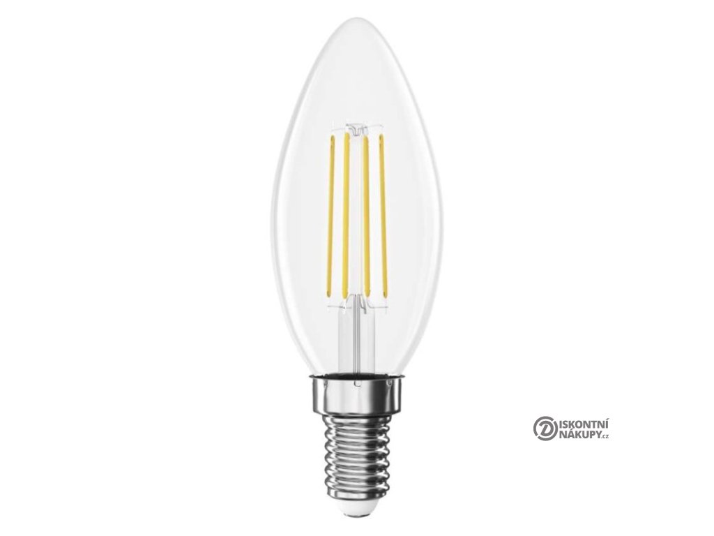 barva světla: neutrální bílá|energetická třída: D|index podání barev (CRI): 80|kompatibilita: –|náhrada za žárovku: 40 W|napětí: 230 V~/50 Hz|notifikace do mobilní aplikace: ne|ovládání hlasovými asistenty: ne|patice (uchycení žárovky): E14|počet čipů: 4|počet spínacích cyklů: 25 000|podporované OS: –|přenosová frekvence: –|příkon: 3,4 W|prodejní obal: 1 ks, krabička|protokol: –|řada: FILAMENT|rozměr: 35 × 35 × 97 mm|stmívatelná: ne|světelná účinnost: 138 lm/W|světelný tok: 470 lm|technologie: LED|teplota chromatičnosti: 4 000 K|tvar: svíčka|typ čipů: COB|účiník: 0,50|úhel vyzařování: 360°|záruční doba: 3 roky|životnost: 25 000 hodinDoplňkové parametry