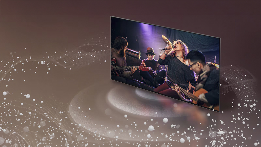 Zvukový systém s akustickým laděním AI Sound Pro (virtuální 9.1.2 Up-mix) obsažený v televizoru LG 75QNED80T6A rozpozná uspořádání místnosti a místo, kde zrovna sedíte. Díky tomu kolem vás vytvoří zvukovou kopuli, která se dokonale přizpůsobí jedinečné akustice pokoje. Také vám do detailu vykreslí bohatý zvuk v kvalitě zvukové scény, kdy budete vnímat každý nádech nebo úder. Funkce Adaptive Sound Control v reálném čase sladí zvuk s jakýmkoliv obsahem, který zrovna sledujete. Dynamický náboj plný výkonu vašemu zvuku dodá procesor zdokonalený AI.