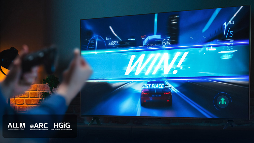 Pro rychlou a plynulou hru, která vás vtáhne do centra dění je televize LG 75QNED80T6A vybavena funkcí Game Optimizer, kde najdete všechna optimalizovaná nastavení pro různé herní žánry včetně FPS, RPG a RTS na jednom místě. Game Dashboard je zjednodušené menu, které umožňuje rychle kontrolovat a operativně měnit jednotlivá nastavení v Game Optimizeru během hraní tak, jak vám to bude zrovna vyhovovat nejvíc. Pro vylepšení herního zážitku je k dispozici herní mód Auto Low Latency Mode (ALLM), který umožňuje komunikaci mezi herní konzolí a televizí pro zobrazení herního obsahu s co nejmenším zpožděním. Herní formát HGiG byl vyvinut proto, aby bylo hraní v nastavení HDR konzistentnější a pro zážitek z přesnějšího obrazu bez nadměrné saturace nebo přeexponovaných oblastí.