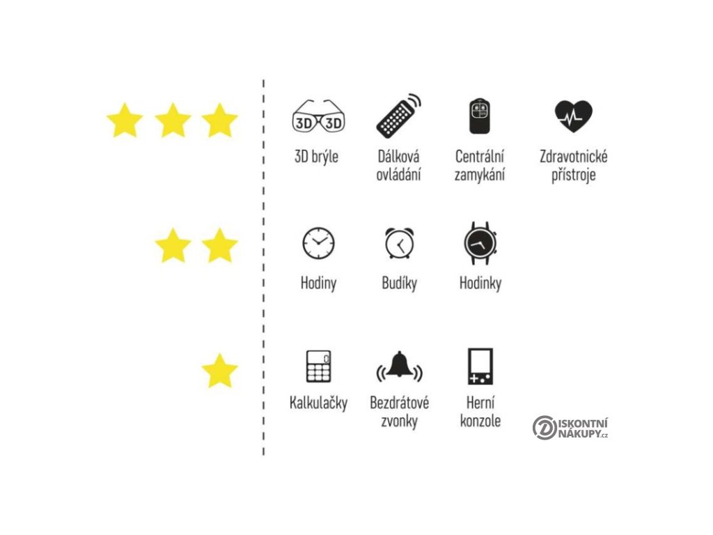 - Baterie do hodinek, fotoaparátů a zařízení s vysokým odběrem