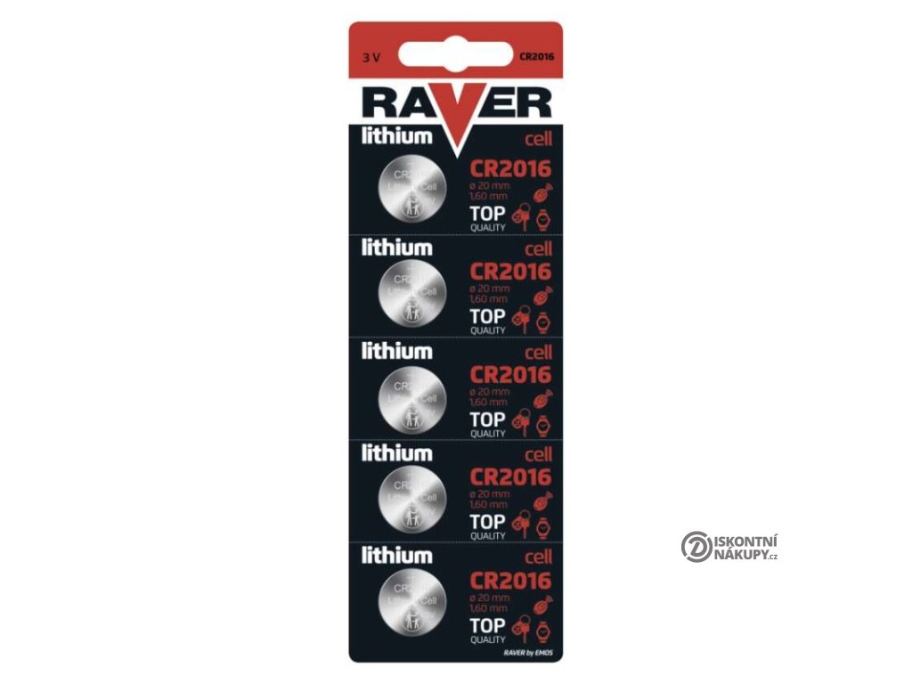 Lithiová knoflíková baterie RAVER CR2016, 5 ks