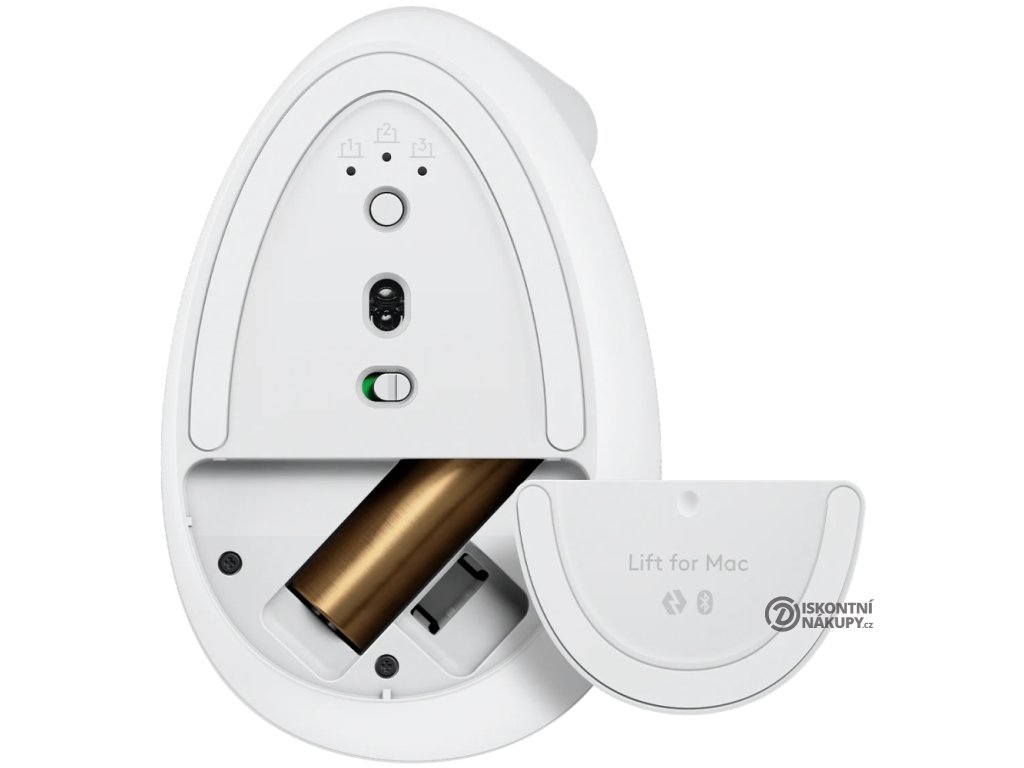 Logitech Lift for Mac Vertical Ergonomic Mouse - White Vertikální myš, optická, 6 tlačítek, bezdrátová, Bluetooth 910-006477