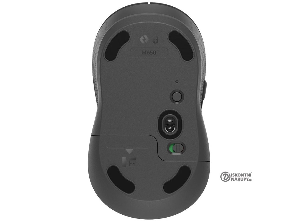 Logitech M650Optická myš vybavená pěti tlačítky s technologií SilentTouch disponuje přesným senzorem s rozlišením až 4000 DPI. Pomocí přepínače na spodní straně si můžete vybrat, zda chcete myš připojit skrze Bluetooth či využít USB adaptér Logi Bolt a připojení 2,4 GHz. Napájení zajišťuje jedna AA baterie, která udrží myš v chodu až 24 měsíců. Výhodou je také samostatné tlačítko pro zapnutí či vypnutí myši, které zajistí delší životnost baterie.