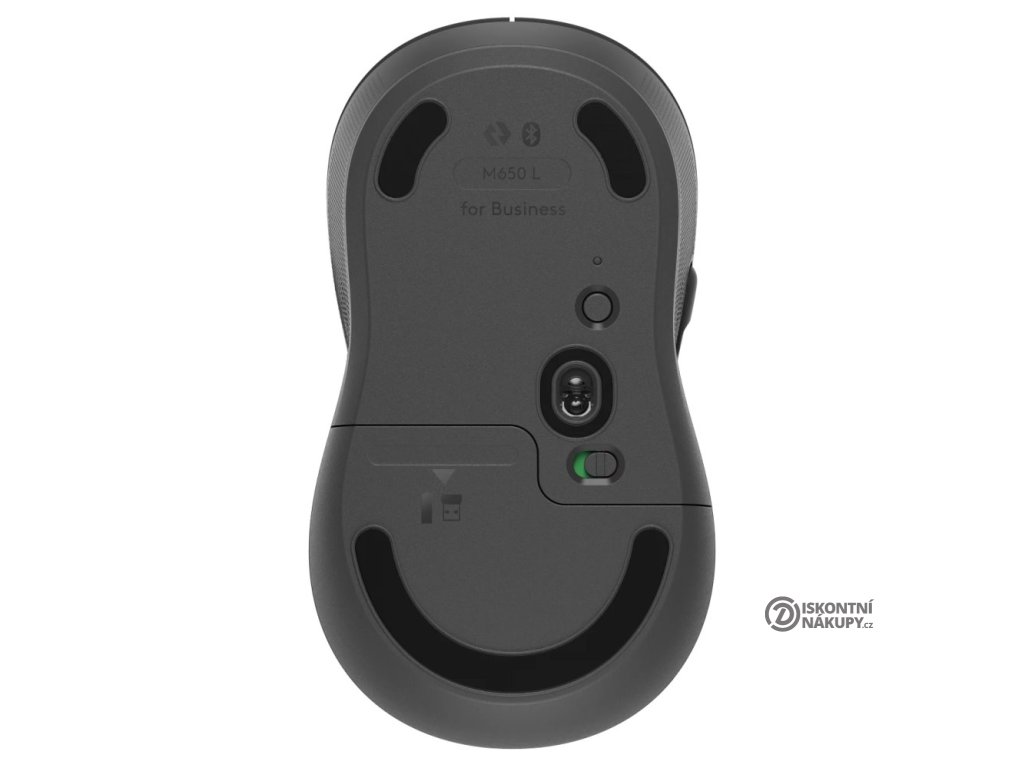 Logitech Signature M650 LOptická myš vybavená pěti tlačítky s technologií SilentTouch disponuje přesným senzorem s rozlišením až 4000 DPI. Pomocí přepínače na spodní straně si můžete vybrat, zda chcete myš připojit skrze Bluetooth či využít USB adaptér Logi Bolt a připojení 2,4 GHz. Napájení zajišťuje jedna AA baterie, která udrží myš v chodu až 24 měsíců. Výhodou je také samostatné tlačítko pro zapnutí či vypnutí myši, které zajistí delší životnost baterie.