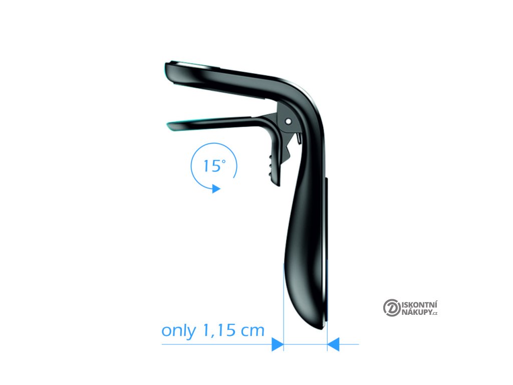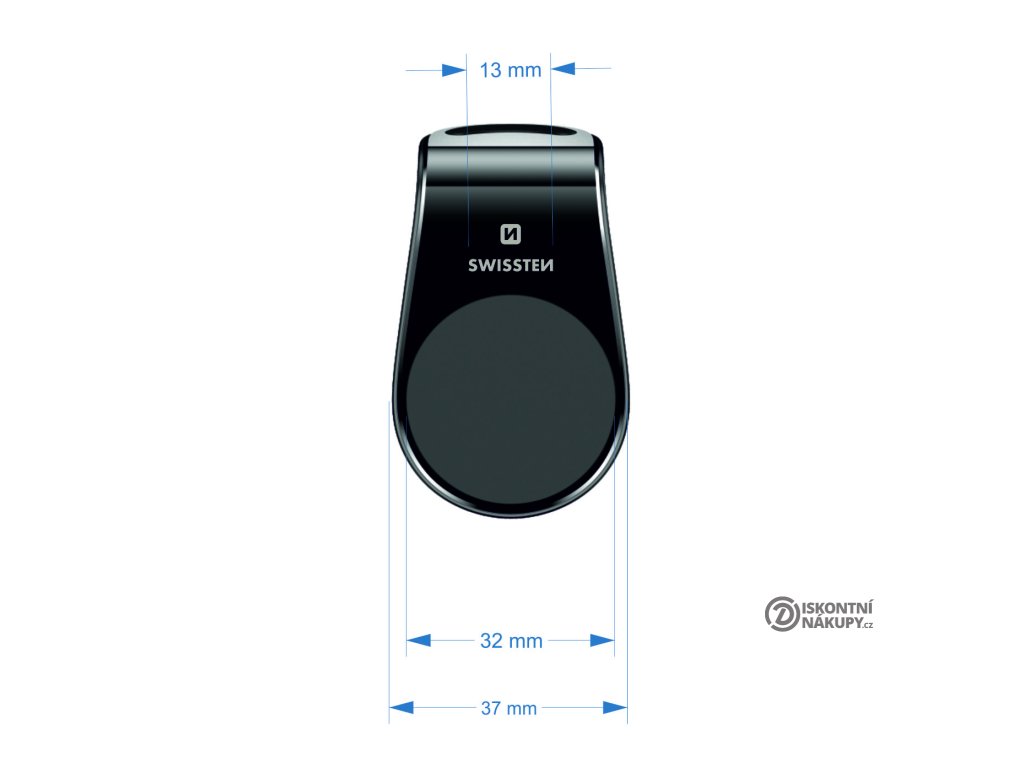 Kovový magnetický držák do auta v elegantním designu. Jedná se o jeden z nejtenších držáků do auta. Je opatřen pěti magnety pro lepší zabezpečení telefonu. Pogumovaný povrch ochrání telefon před poškrábáním a zamezí možnost skluzu telefonu. Pevný stisk čelistí v kombinaci s nano podložkou zabezpečí držák proti vysunutí z mřížky. Baleno v blistru Swissten.