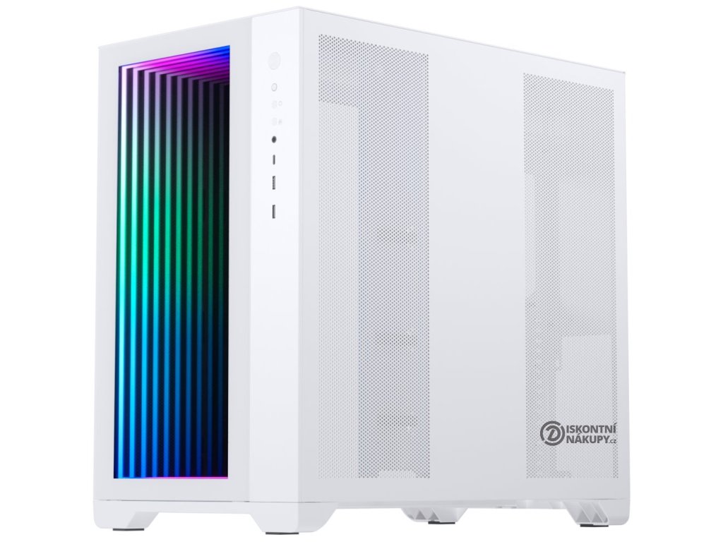 Magnium Gear by Phanteks NEO Qube 2 IMProstorná skříň formátu Middle Tower nabízí tři 2,5" pozice pro SSD disky a dvě 3,5" pozice pro pevné disky. Na předním panelu se nachází jeden port USB-C 3.1 Gen2, dva USB 3.0 porty a kombinovaný port sluchátek a mikrofonu. Skříň je vybavena ARGB podsvícením, které spolu s průhlednou bočnicí a předním panelem zajišťují vytříbený design. Přední panel je navíc vyroben z vícevrstvého skla a vytváří tak efekt nekonečného zrcadlení přítomného ARGB podsvícení. Důmyslné řešení umožňuje pohodlné umístění celkem až devíti 120 mm velkých ventilátorů a až 360 mm dlouhého výměníku vodního chlazení na horní, spodní či boční straně. Ve skříni je prostor pro chladič CPU do výšky až 148 mm a grafickou kartu o délce až 410 mm. Pro výkonnější sestavy doporučujeme použití vodního chlazení procesoru. Skříň je dodávána bez zdroje. Součástí je také sada prachových filtrů.