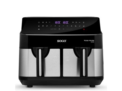 Chytrá, multifunkční a dvojtá horkovzdušná fritéza. 2 fritovací koše - celková kapacita 9 l (2x 4,5 l). Samostatné ovládání pro každy koš a možnost vařit 2 jidla najednou -...
