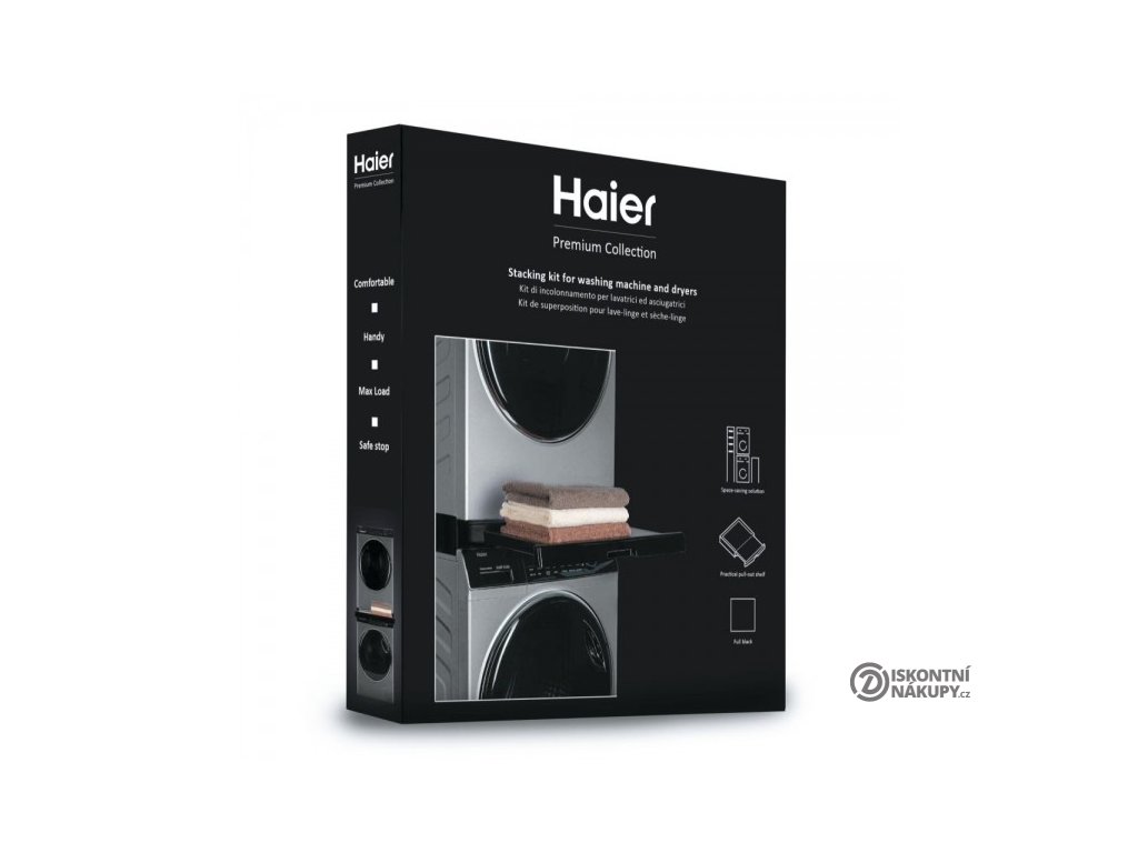 Spojovací díl Haier HASTKU10FB je určen pro spojení pračky a sušičky. Černý design vhodný pro spotřebiče v antracitové barvě. Pohodlná výška pro usnadnění manipulace s prádlem bez zbytečného ohýbání. Praktický pro skládání prádla při vyprazdňování sušičky. Zásuvka unese zátěž až 12 kg a má bezpečnostní zarážku proti vypadnutí. Užitná plocha zásuvky: 36×50 cm. Celková výška spotřebičů se při použití spojovacího dílu zvýší o 5 cm. více
