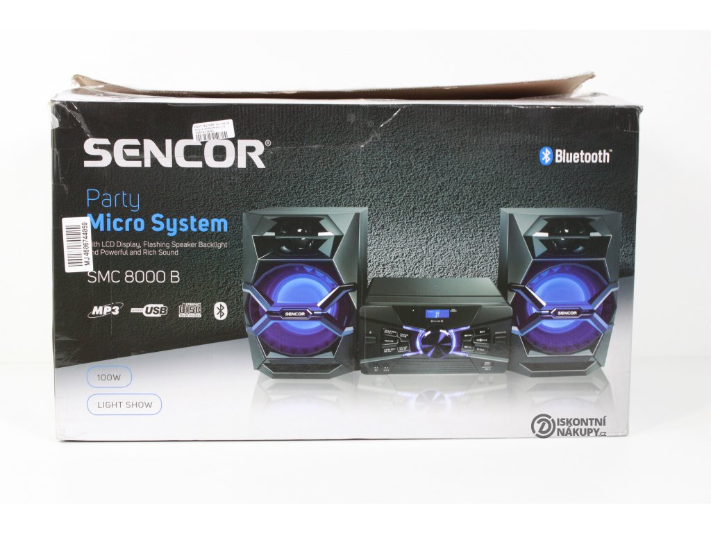 Luxusní párty mikro systém Sencor SMC 8000B oživí každý večírek. Zamilujete si ho hned na první pohled díky jedinečnému a modernímu designu. Poté, co poznáte silný a mohutný dunivý zvuk, který se z něj začne linout, už ho nebudete chtít nikdy vypnout. Celkový výkon 100 W je rozdělen do dvou basových a dvou výškových reproduktorů. Na hlavní jednotce se nachází přehledný LCD displej s informacemi o aktuálně přehrávaných skladbách.