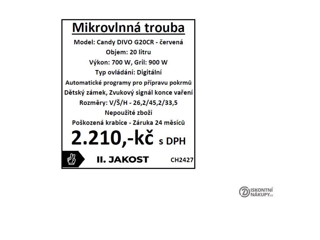 Mikrovlnná trouba Candy DIVO G20CR ..Nepoužité zboží ..Poškozená krabice