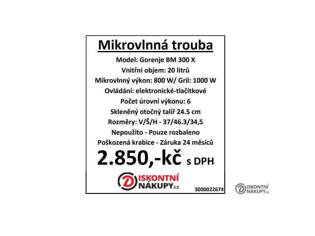 Mikrovlnná trouba Gorenje BM 300 X nerez Poškozený obal-rozbaleno