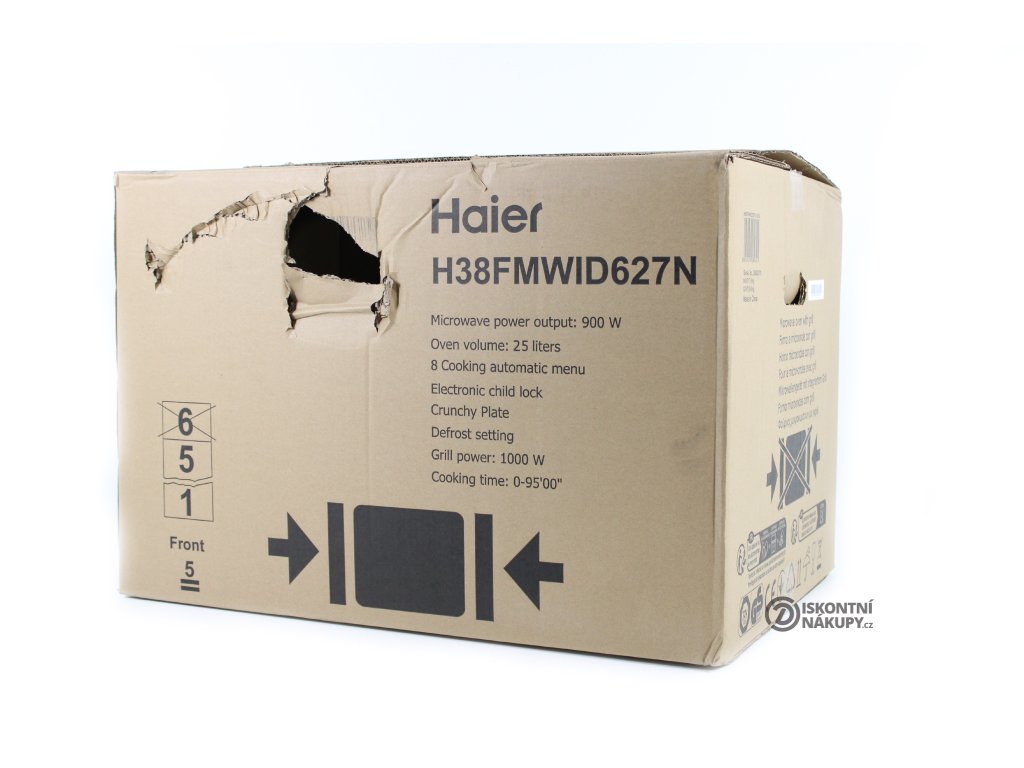 Mikrovlnná trouba Haier Series 6 H38FMWID627N ..Nepoužité zboží ..Zadní strana deformace plechu ..Poškozená krabice