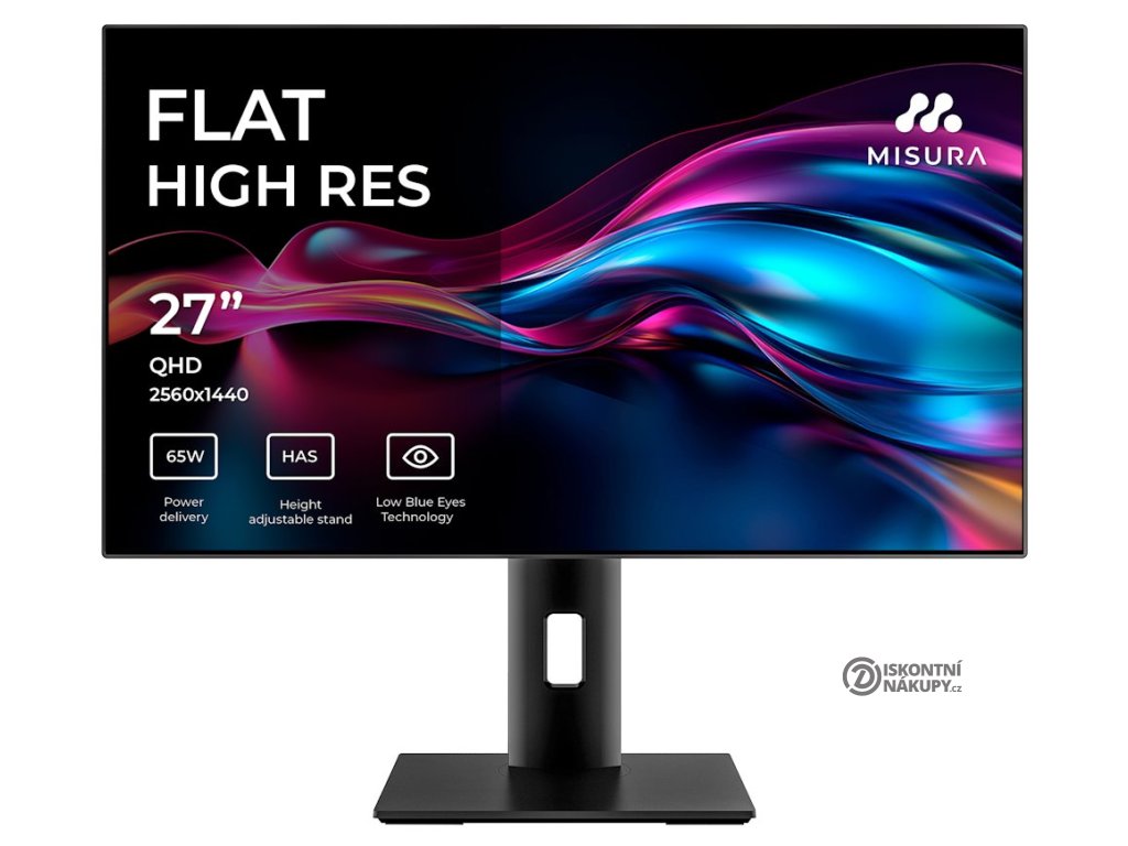 MISURA P23PW27DQI01Bezrámečkový LED monitor s úhlopříčkou 27" a Quad HD rozlišením 2560 × 1440 bodů. Nabízí kontrastní poměr 1000 : 1, jas 350 cd/m2 a dobu odezvy 4 ms. Použitá technologie IPS nabízí pozorovací úhly 178° horizontálně i vertikálně. Monitor disponuje univerzálním portem USB-C, který kromě vysokorychlostního přenosu videa a dat umožňuje napájení připojených zařízení až do 65 W. Zajisté potěší také vestavěné stereo reproduktory s celkovým výkonem 6 W, výškově nastavitelný stojan a funkce Pivot, díky které lze monitor otočit o 90 stupňů.