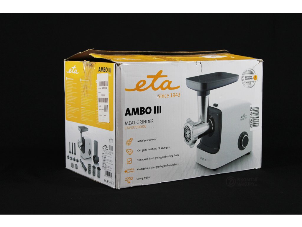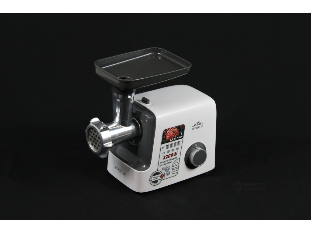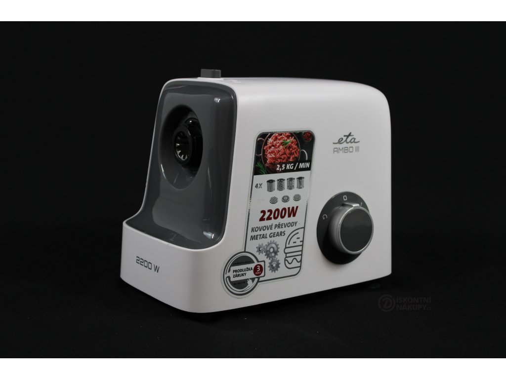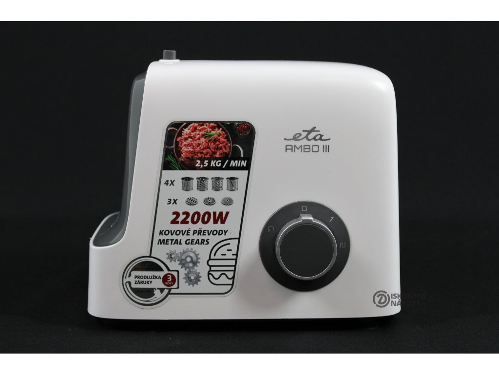 Nový a vylepšený elektrický mlýnek na maso ETA Ambo III se pyšní skvělým výkonem 2 200 W a 2 rychlostmi mletí. Kvalitní převodová kola i kovová mlecí komora zaručují dlouholetou životnost přístroje. Díky odolnému nerezovému mlecímu noži a mlecím destičkám se můžete pustit do zpracování jakéhokoliv masa.