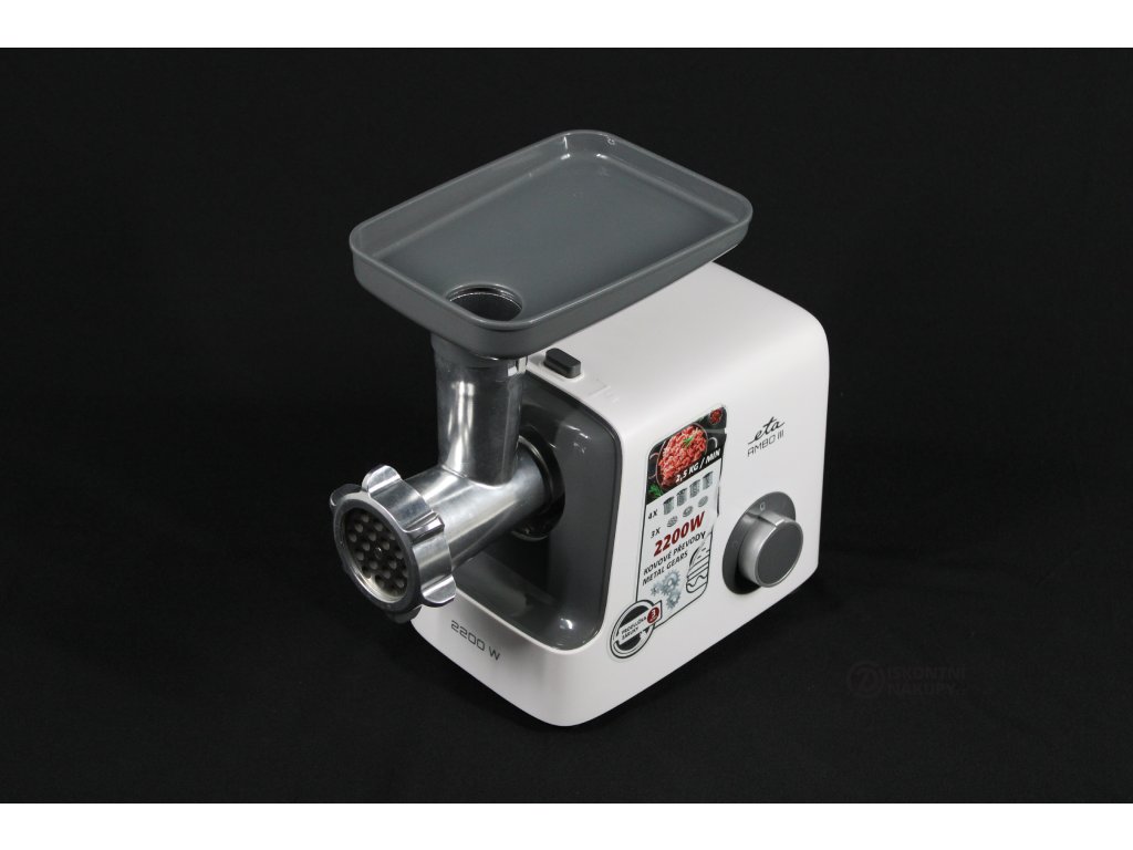Nový a vylepšený elektrický mlýnek na maso ETA Ambo III se pyšní skvělým výkonem 2 200 W a 2 rychlostmi mletí. Kvalitní převodová kola i kovová mlecí komora zaručují dlouholetou životnost přístroje. Díky odolnému nerezovému mlecímu noži a mlecím destičkám se můžete pustit do zpracování jakéhokoliv masa.