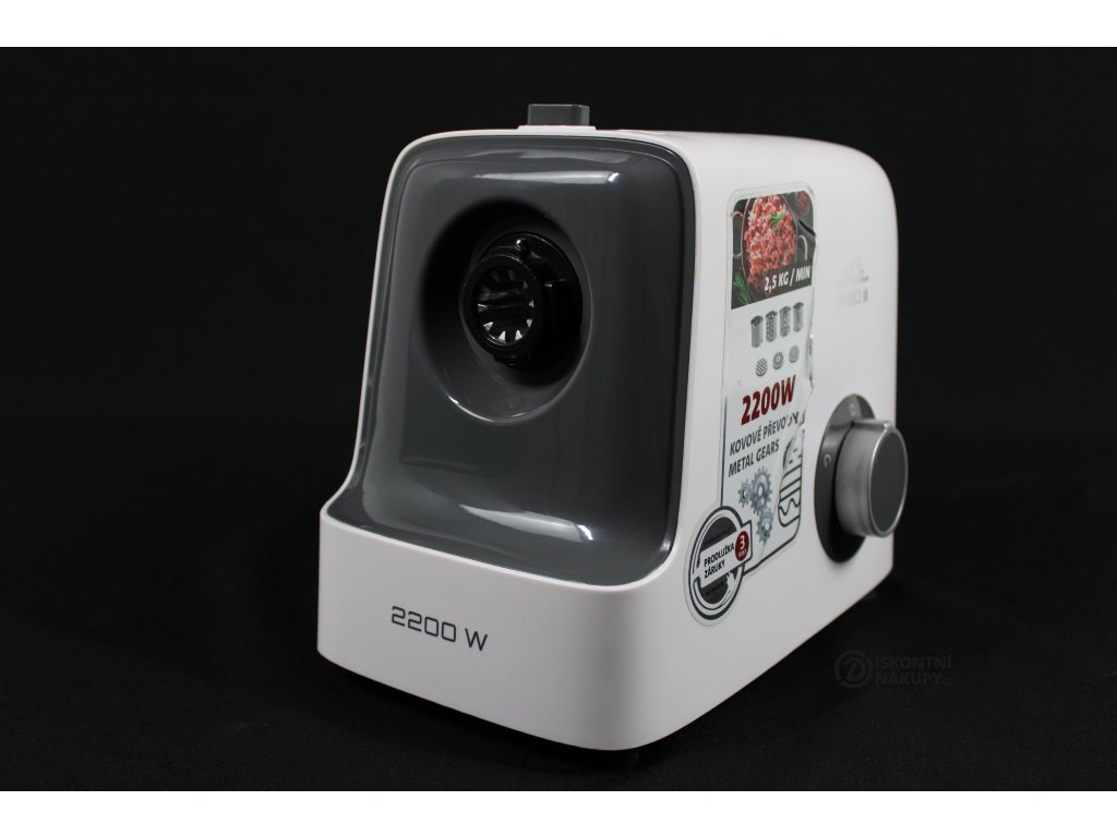 mlýnek na maso • příkon 2 200 W • vysoká životnost a odolnost • tvrdý nerezový mlecí nůž a destičky • 2 rychlosti • funkce REVERS pro zpětný chod • možnost mletí, strouhání, krájení a plnění uzenin • bohaté příslušenství • ochrana proti poškození motoru • protiskluzové nožičky • hlučnost 85 dB • rozměry: 31 × 17,2 × 31,8 cm • délka napájecího kabelu 1 m