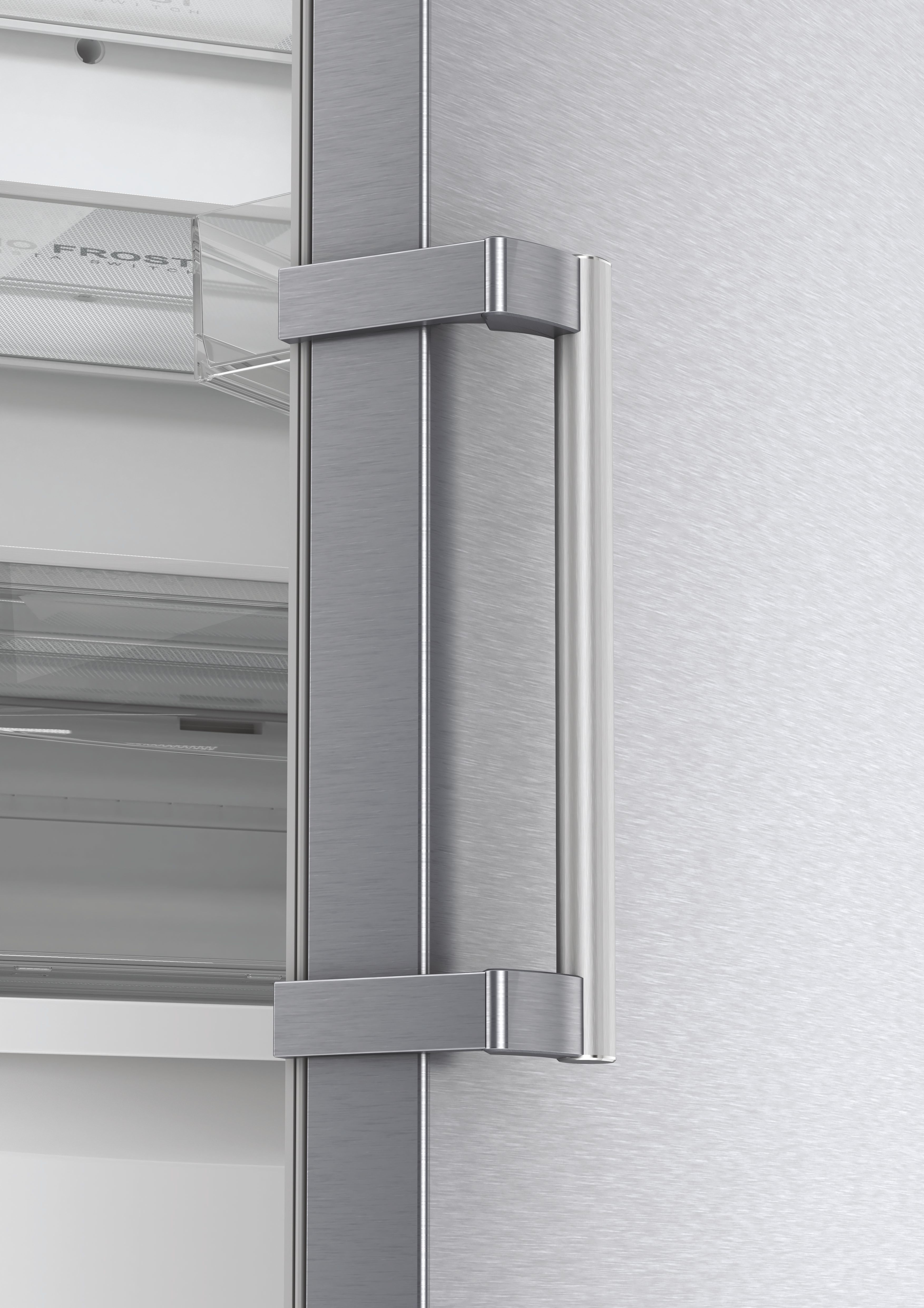 Elegantní kovové madlo usnaňuje otevírání a zavírání dvířek zásuvkového mrazáku/chladničky Instaswitch, zatímco vnitřní uspořádání bylo přepracováno tak, aby lépe odpovídalo každodenním potřebám – praktické jsou například nové police ve dveřích, do kterých se dají uložit drobné potraviny, které se často v zásuvkách ztratí.
