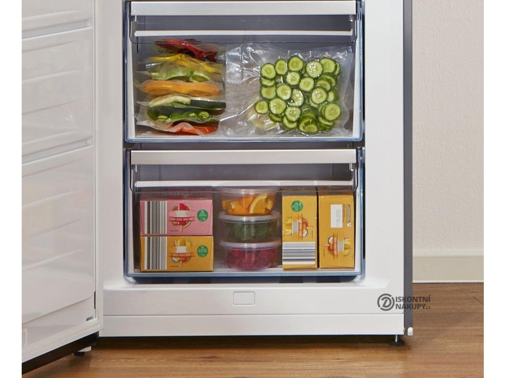 V případě delší nepřítomnosti lze mrazničku nastavit na úsporný režim, protože dvířka jsou po celou dobu zavřená.