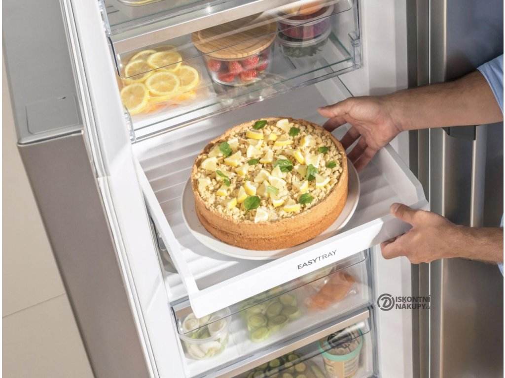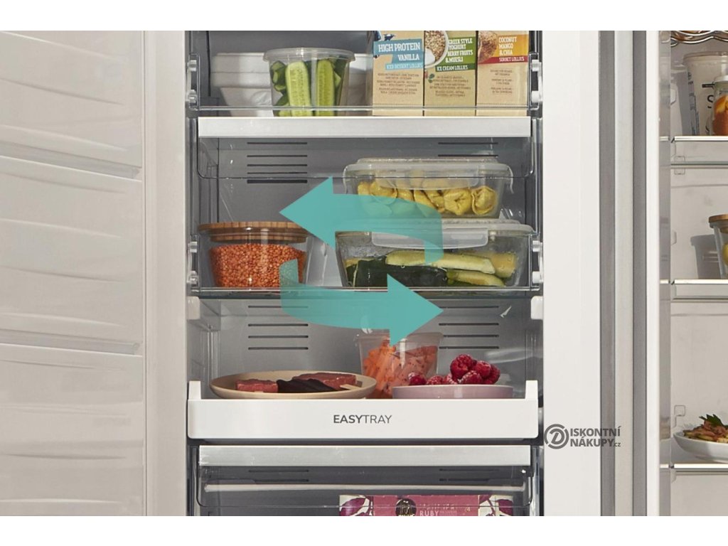 Speciálně navržený vysouvací podnos v mrazicí přihrádce vám umožní mít skvělý přehled o uložených mražených potravinách – i to, uložené úplně vzadu, nelze přehlédnout. Umístění podnosu je v horní části mrazáku. Podnos lze vysunout až do krajní polohy, abyste dosáhli na všechny skladované potraviny.