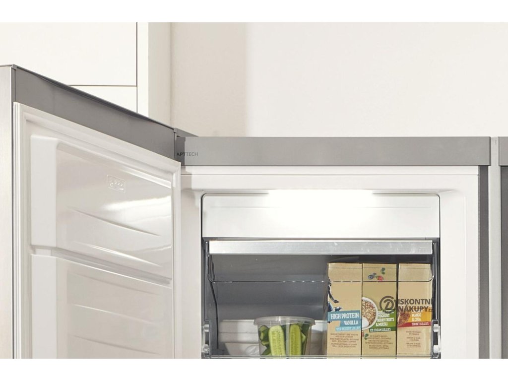 Invertorové kompresory jsou tišší, odolnější, a spotřebují méně energie ve srovnání s běžným kompresorem. Lépe a rychleji se přizpůsobí změnám teploty uvnitř lednice, například když se otevřou dveře. To znamená méně kolísání teploty a lepší podmínky pro skladování potravin. Tak SE TO udrží čerstvé a v nejlepší kondici.