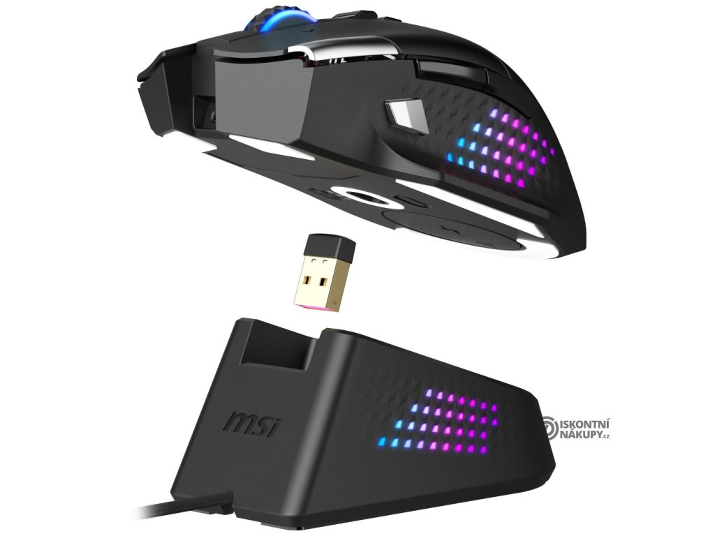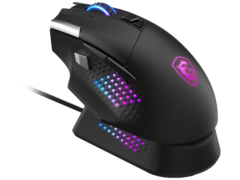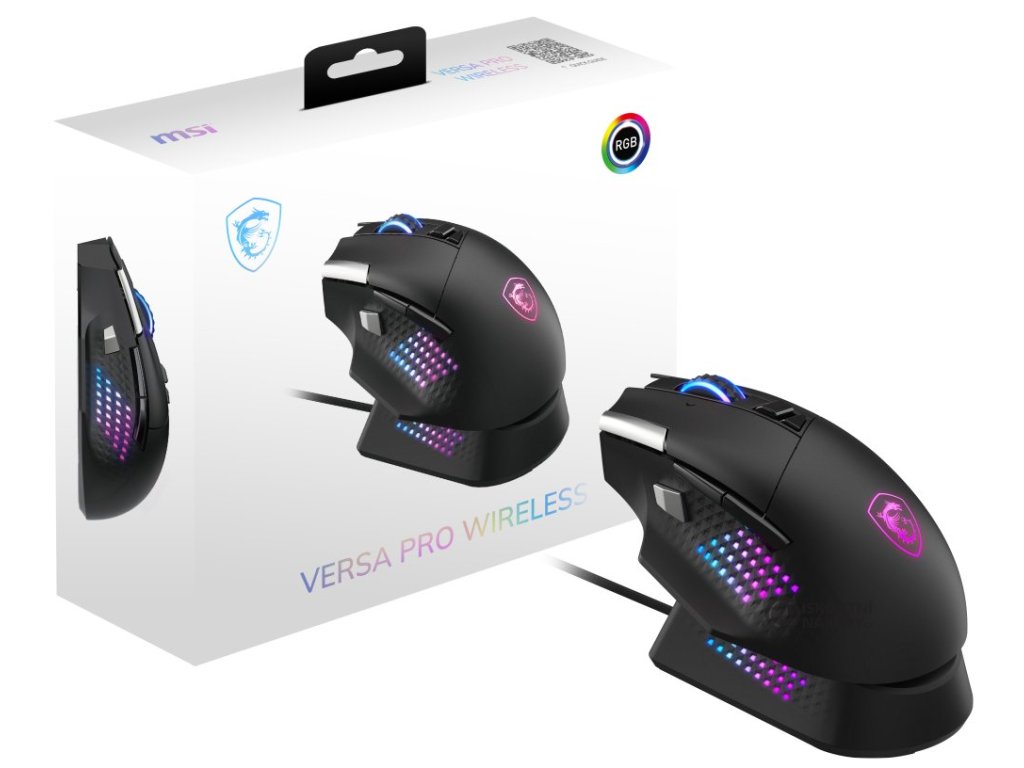 MSI herní myš VERSA PRO Wireless + Mouse Dock PRO/ bezdrátová/ 26.000 dpi/ 2,4GHz/ BT5.3/ USB/ RGB/ 15 tlačítek S12-4301370-CLA