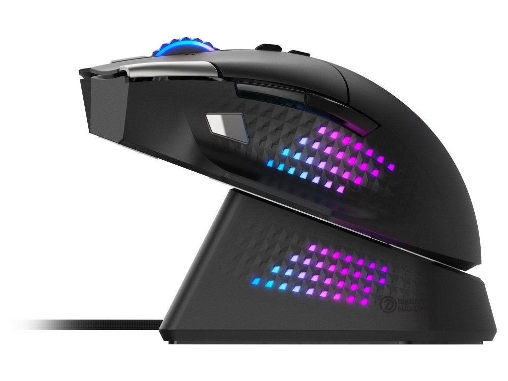 Samozřejmostí je také nastavení podsvícení nebo režimu připojení. Optické spínače OMRON disponují rychlou odezvou a vysokou odolností a životností 70 milionů kliknutí. Efektivně potlačují riziko dvojitého kliknutí při opotřebení, takže i v pozdějších letech můžete s přehledem hrát náročné tituly. Jako většina herních hrdinů i tento má po svém boku svého parťáka – dokovací stanici MOUSE DOCK PRO s Qi certifikací a RGB podsvícením pro nabíjení.